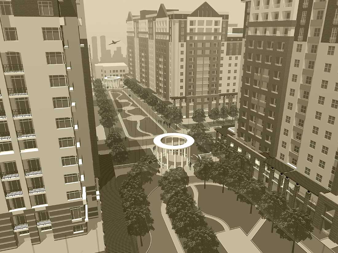 Архитектор Юрий Бородкин.   Проект строительства жилого комплекса на улице Народного ополчения в городе Киеве.