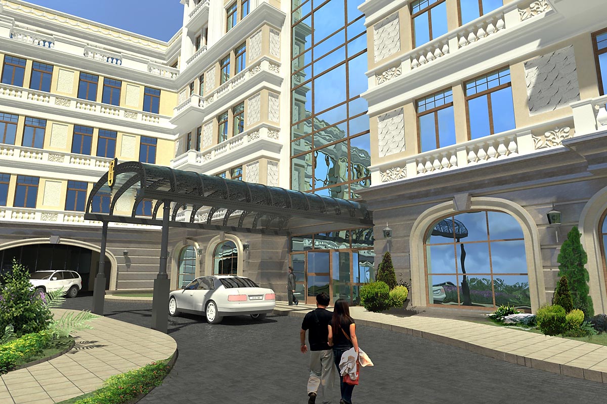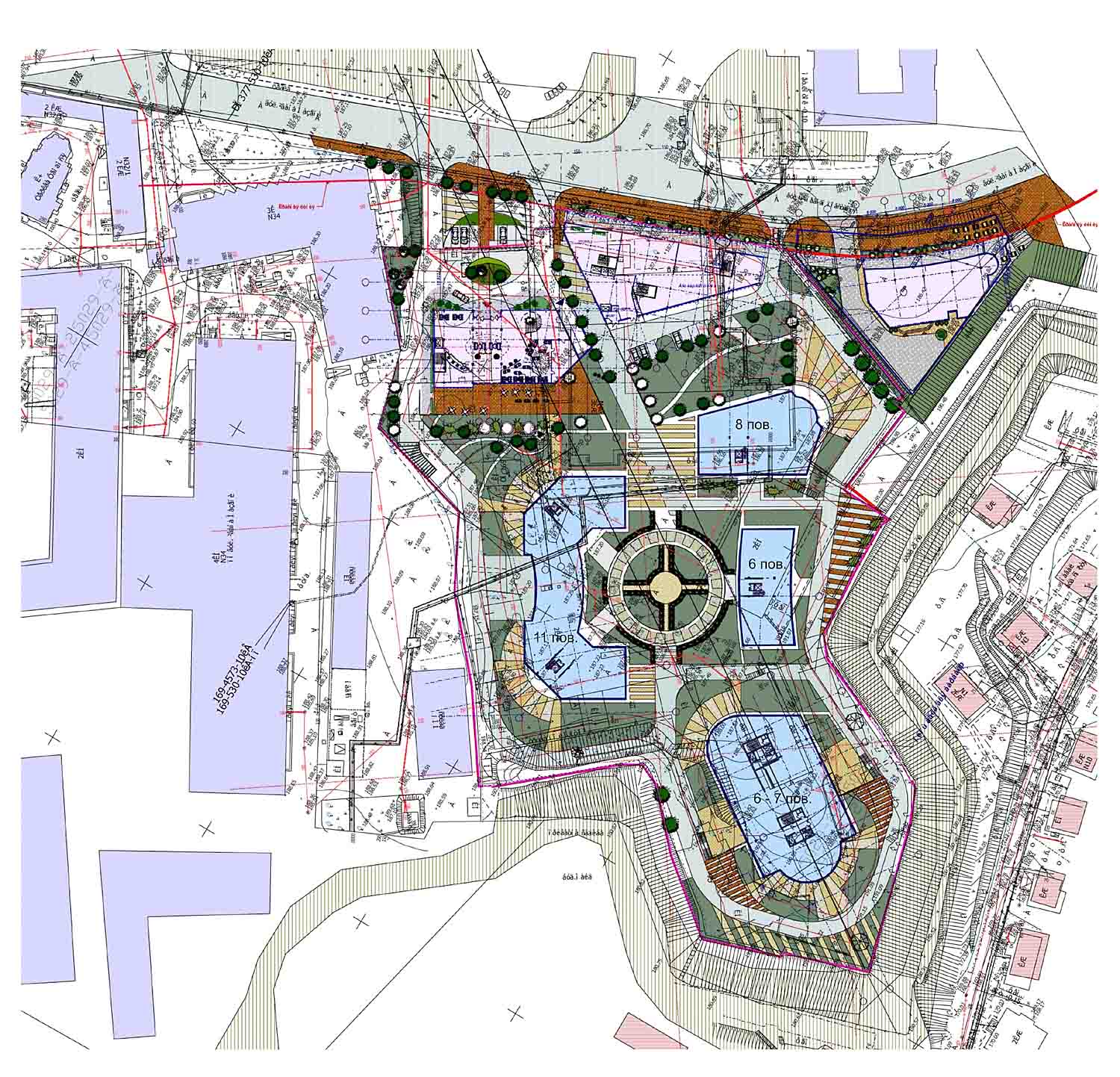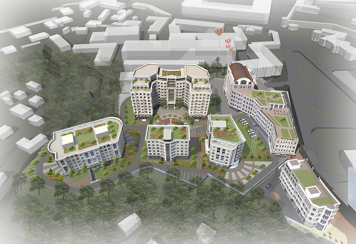 Проект общественного комплекса с объектами гостиничного назначения и паркингом по улице Ивана Мазепы 38, 40 в городе Киеве Авторский коллектив: гл. спец.архитектор С. Рыченкова, архитектор Е.Антипова, архитектор Л. Водецкая, архитектор С. Саик, архитектор Л. Антонюк Вариант 1 |