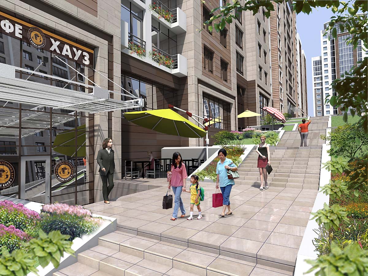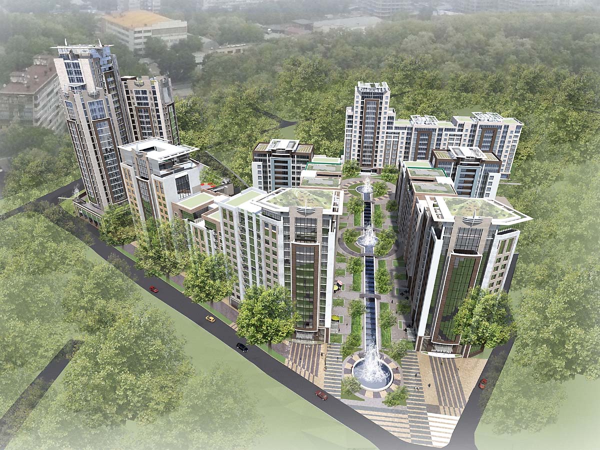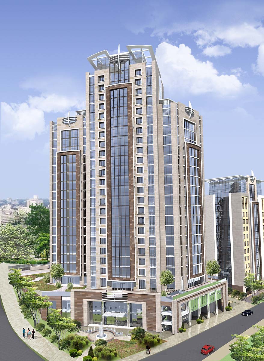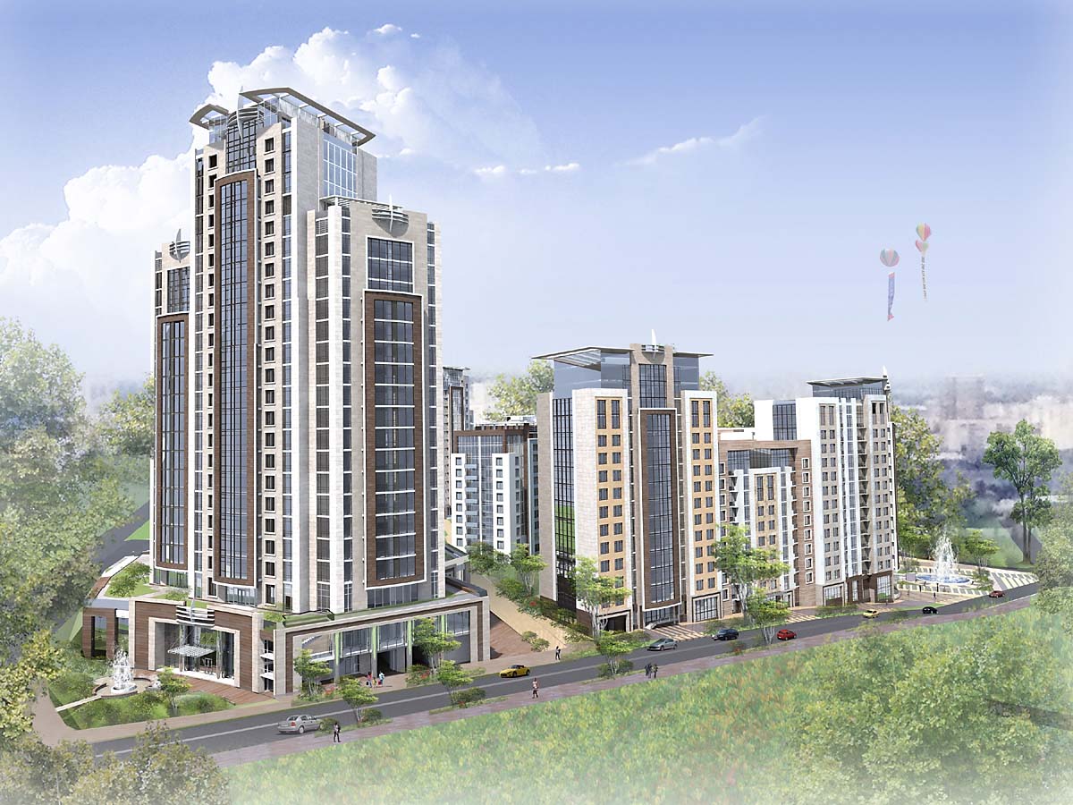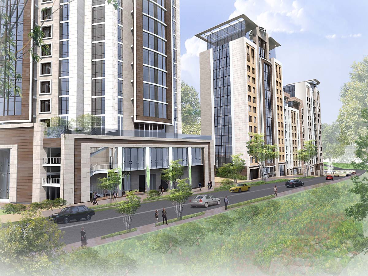 Проект многофункционального жилого комплекса с объектами социально-общественного назначения и паркингом по улице Патриса Лумумбы 6/1. Печерский район города Киева Авторский коллектив: гл. спец. архитектор С. Рыченкова, архитектор Е. Антипова, архитектор Л .Водецкая, архитектор С. Саик |