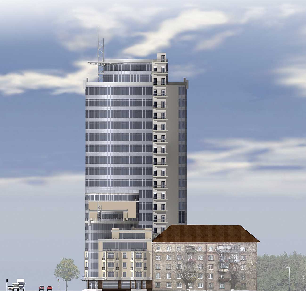 Проект жилого дома со встроенно-пристроенными помещениями на пересечении улиц Боженко и Лабораторной. Голосеевский район города Киева Авторский коллектив: гл. спец. архитектор С. Рыченкова, архитектор Д. Шевченко |