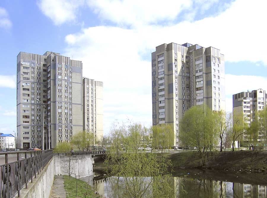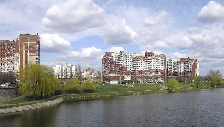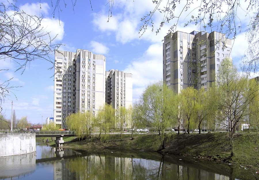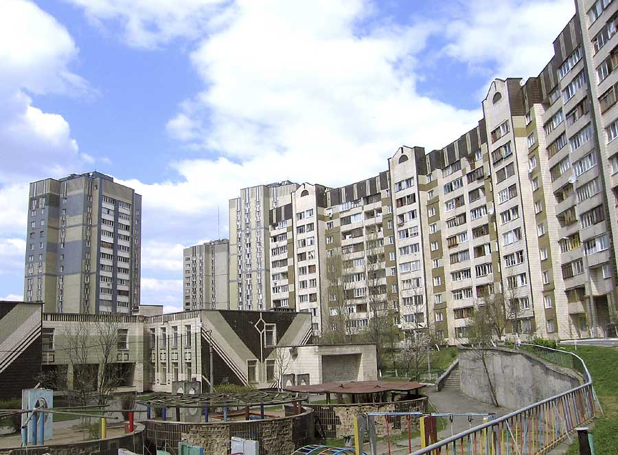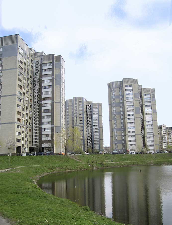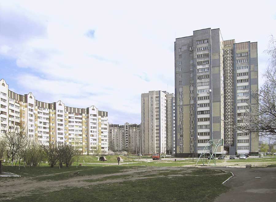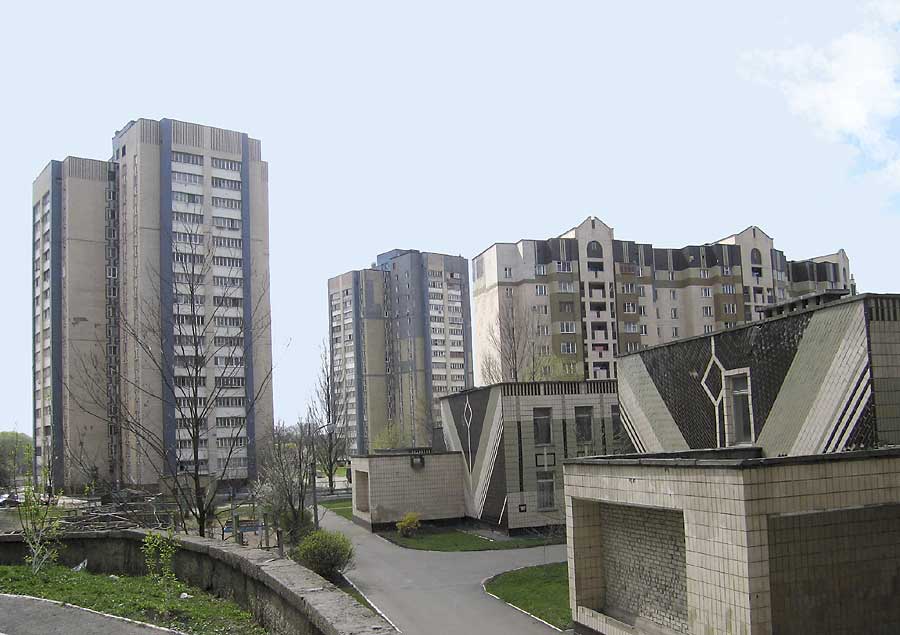 Фрагмент застройки первого микрорайона жилого массива Троещина в городе Киеве. |