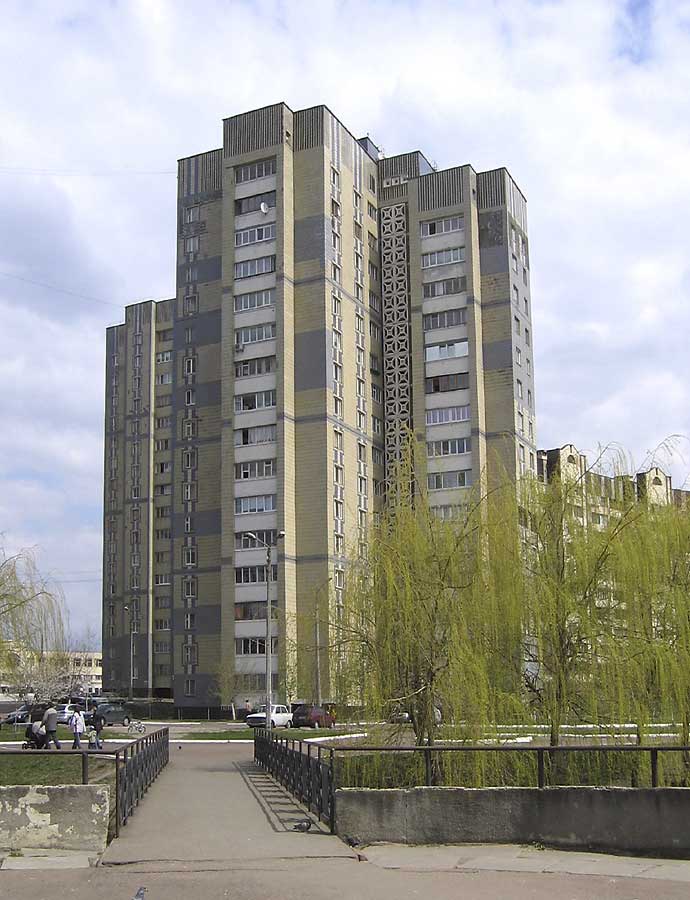 Жилой дом на пересечении Харьковского шоссе и улицы Тростянецкой в Киеве. |