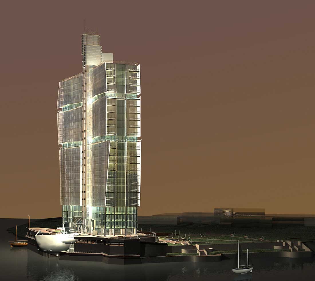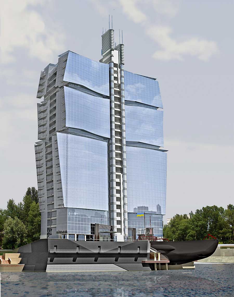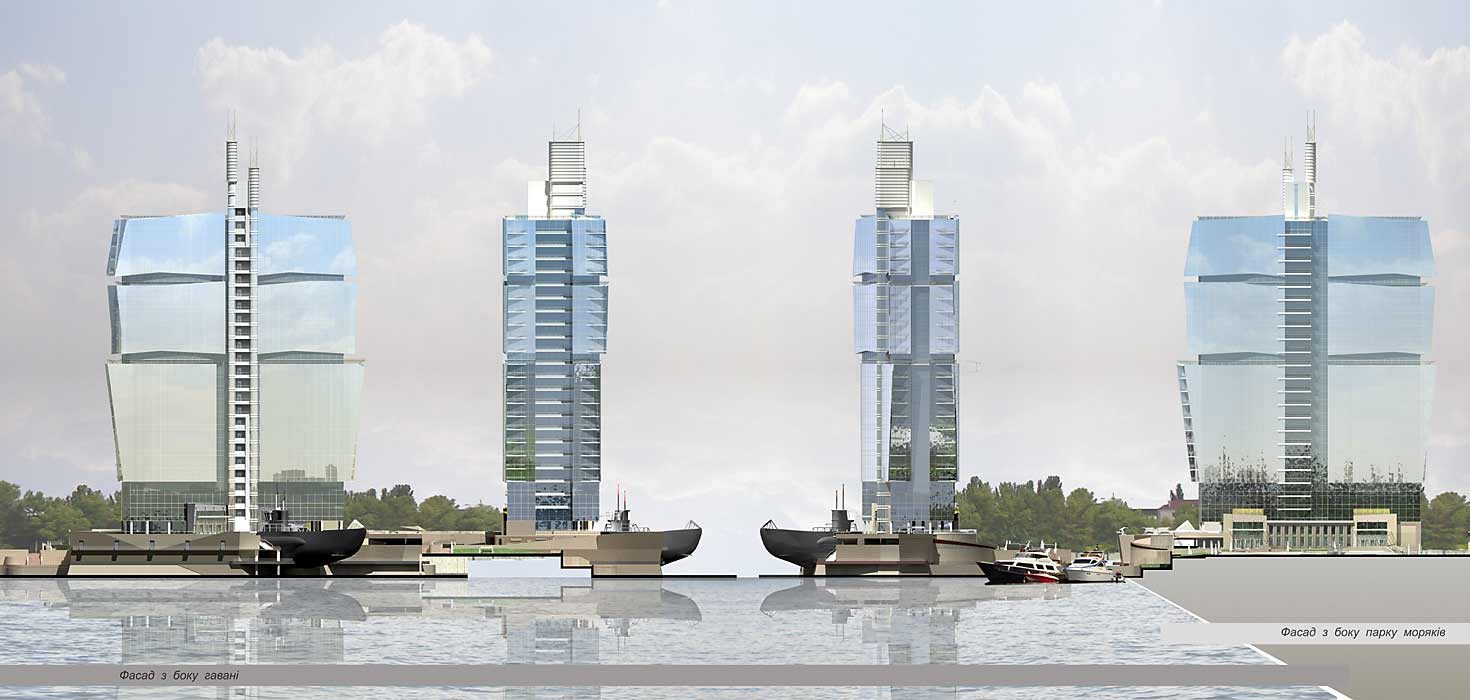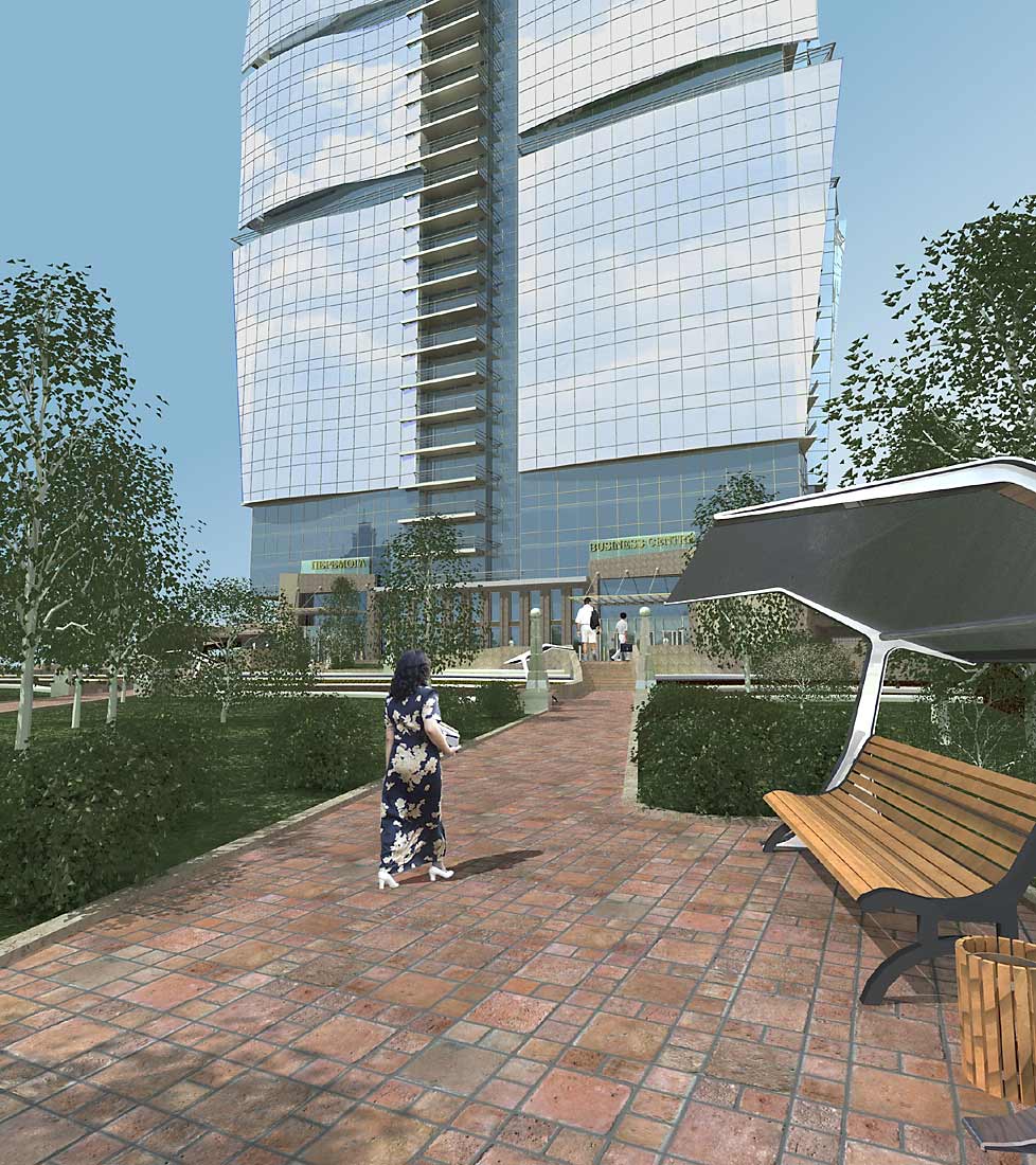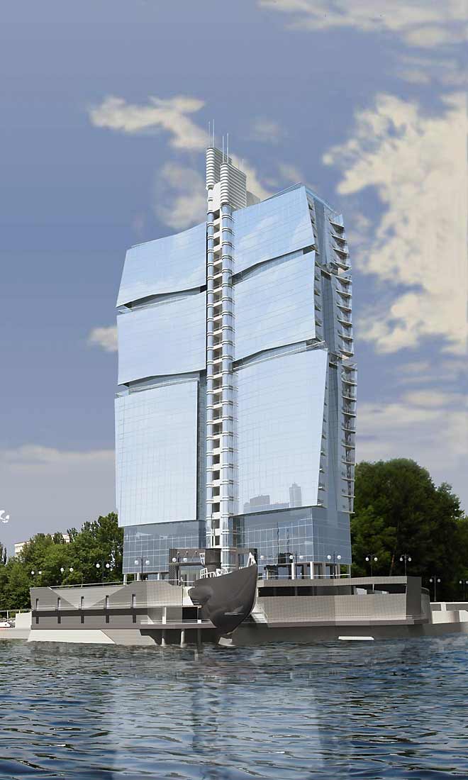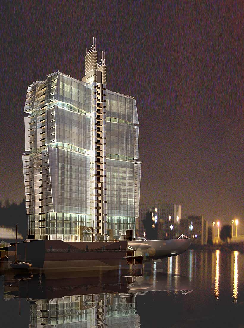 Запроектированное двадцатидвухэтажное административное здание выгодно отличается от окружающей среды и может стать доминантой квартала и всего микрорайона. На первом и втором этаже запроектирован музейный комплекс №Победа». На третьем этаже запроектированы помещения клуба ветеранов и военно – морского клуба. На остальных этажах расположены административные помещения. Проектом предусмотрено два уровня автостоянок в цокольном и подземном этажах. В центре здания встроена конструкция лестнично-лифтовых узлов, служащая своеобразной башней – акцентом в решении объёма здания на всю высоту фасада. Технико-экономические показатели Площадь участка 0,47 га Площадь застройки 3515,00 кв. м Количество этажей 22 Общая площадь 31160,00 кв.м В том числе: - административного здания 26650, кв. м - паркинга 4450,00 кв. м - встроенных торговых помещений 60,00 кв. м Расчётная площадь - административной части (без балконов) 21240,00 кв. м - помещений военно-морского музея «Победа» 480, кв. м - военно-морского клуба флота 430,00 кв. - помещений кафе (50 мест) 285,00 кв. м Площадь паркинга (180 автомобилей) 3650,00 кв. м Площадь технических помещений 445,00 кв. м Строительный объём комплекса 109690,00 куб. м В том числе - административного строения 91360,00 кв. м - паркинга 18057, куб. м -встроенной торговой площади 273 кв. м |