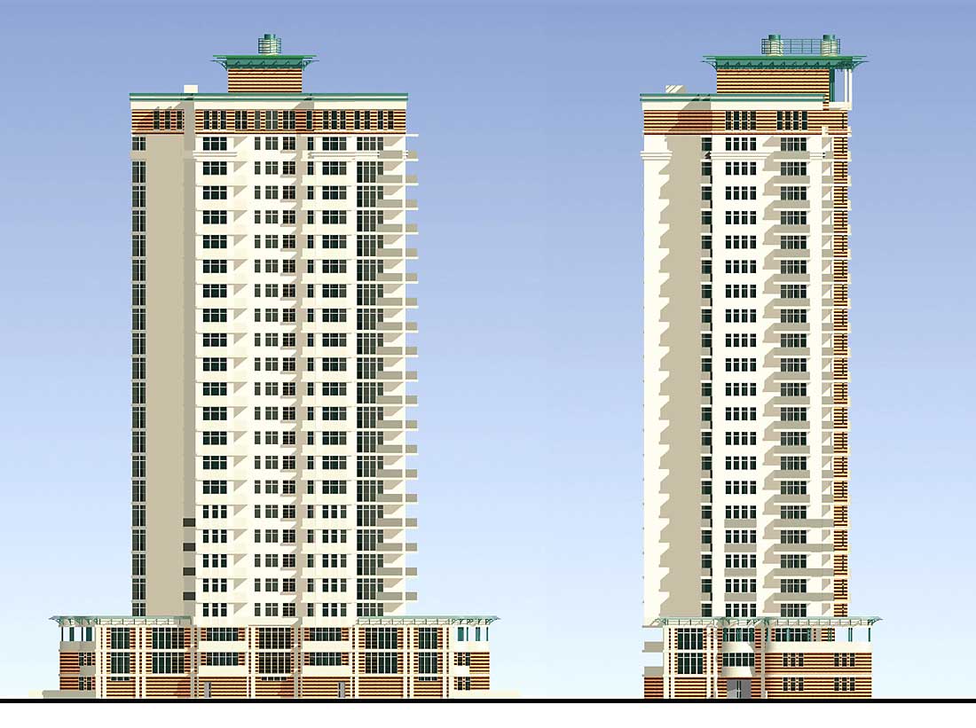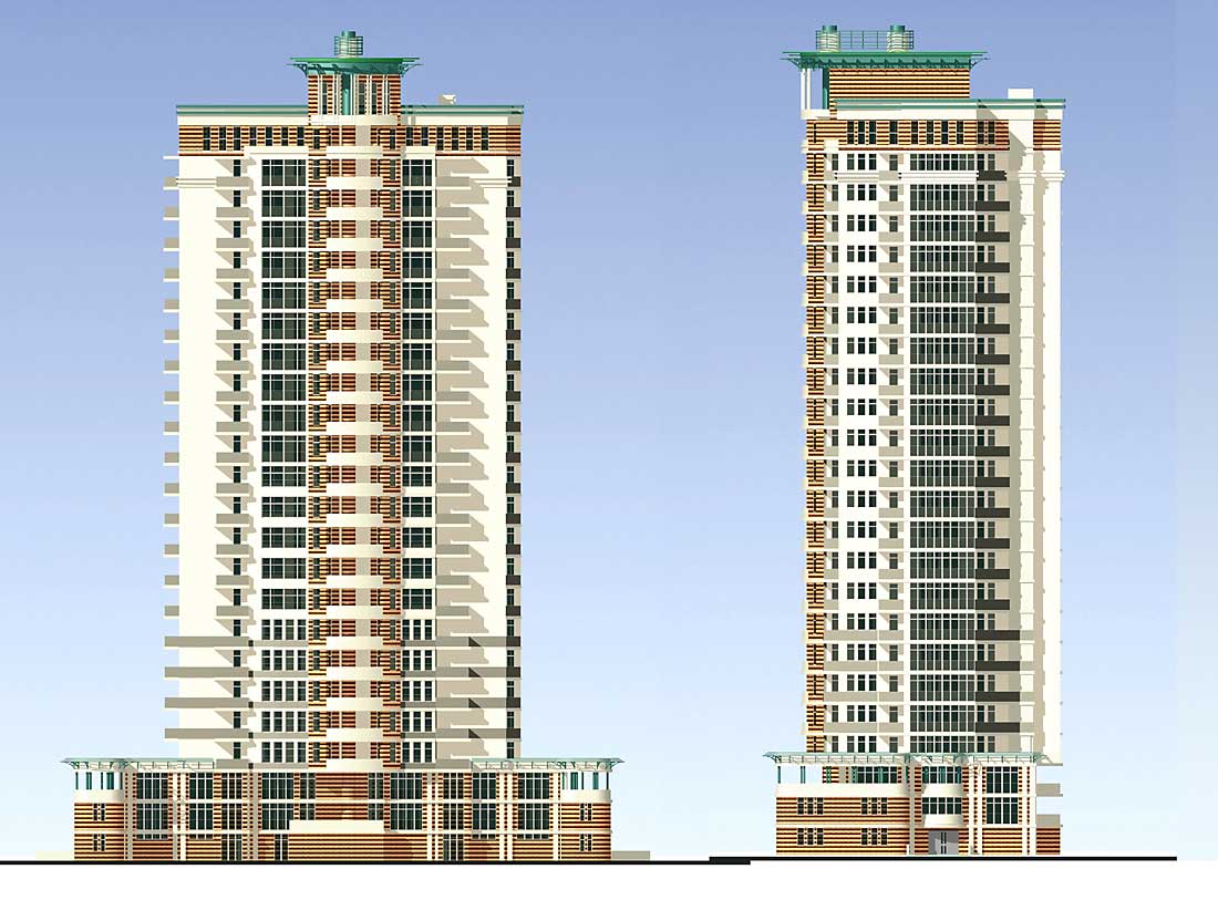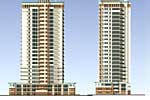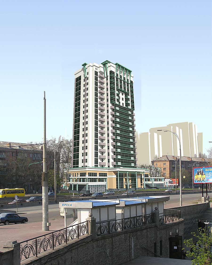Технико-экономические показатели: - площадь участка 0,28 га - площадь застройки 1106 кв. м - количество этажей 25 - количество квартир 84 - общая площадь квартир 13025 кв. - площадь офисных помещений 768 кв. м - площадь помещений кафе-кулинарии 398 кв. м - количество мест для парковки автомобилей 47 |