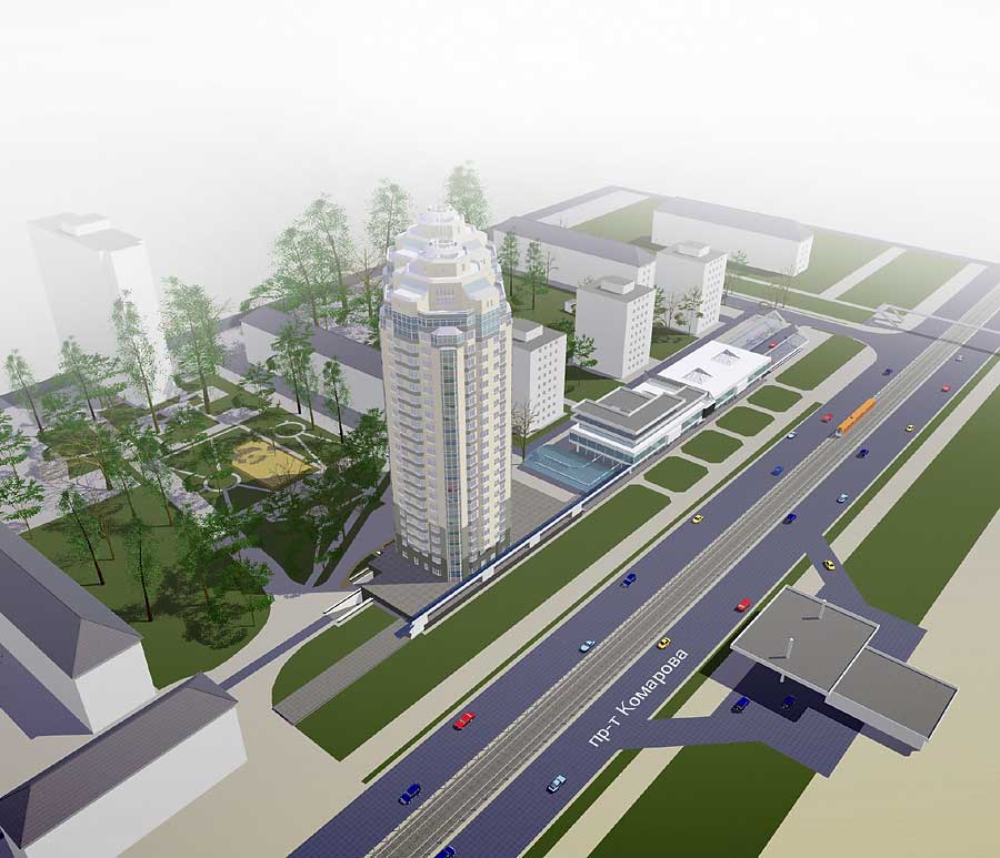 Архитектор Владимир Приймак. Проект жилого дома с объектами соцкультбыта на проспекте Комарова, 22 в Киеве.