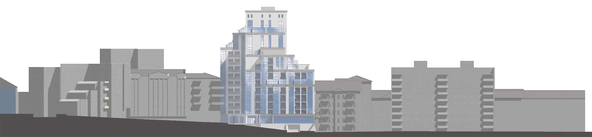 Архитектор Владимир Приймак. Проект отельно – жилого комплекса «Дипломат» с подземным паркингом по улице Гоголевской, 46 в городе Киеве.