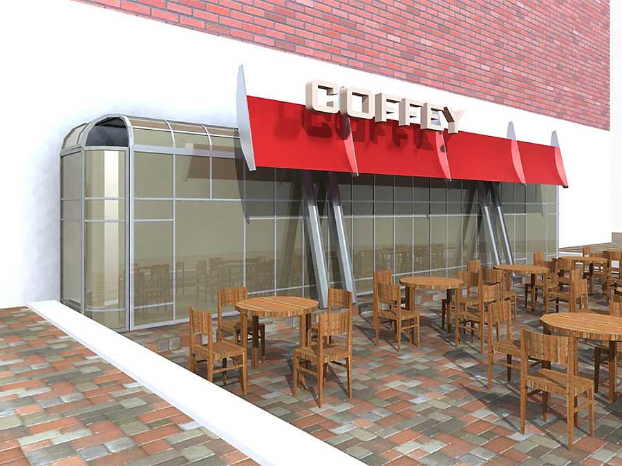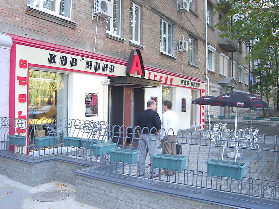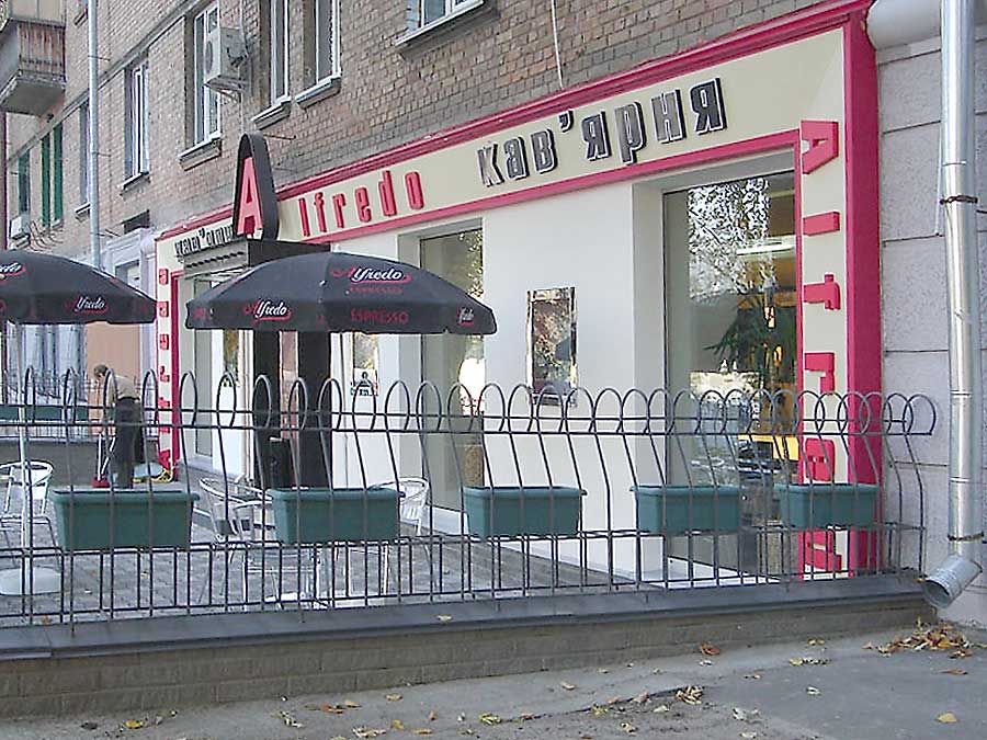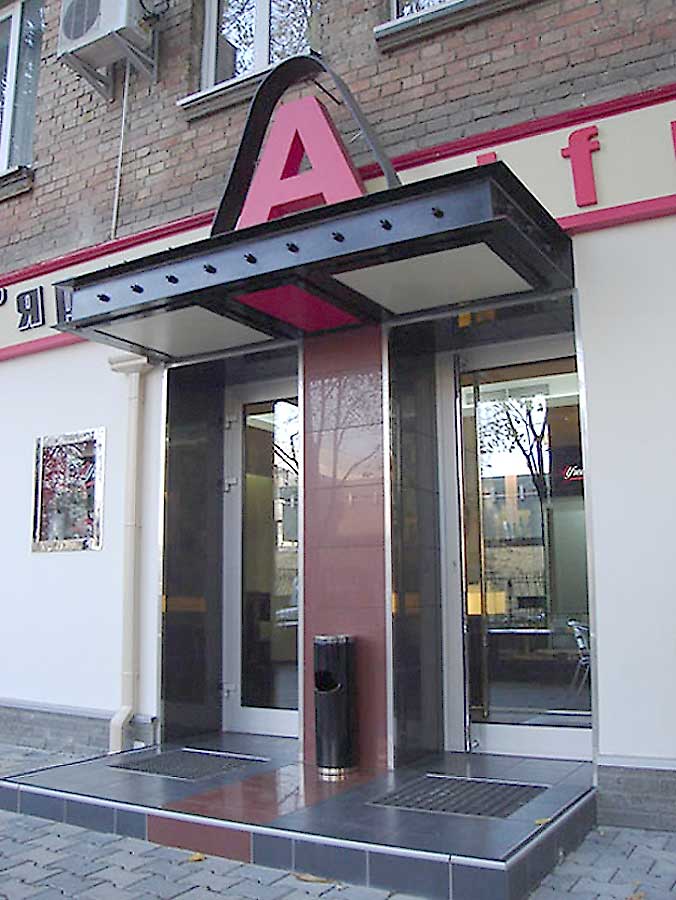Дизайн входной группы кафе. Киев, улица Патриса Лумумбы.