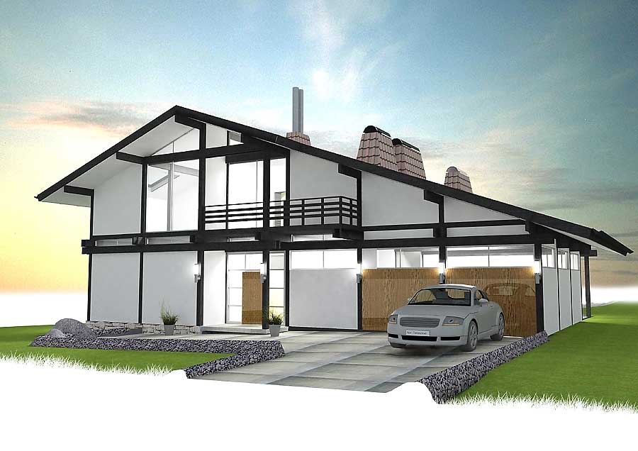 Проект загородного дома. Немецкий фахверк в функционализме.