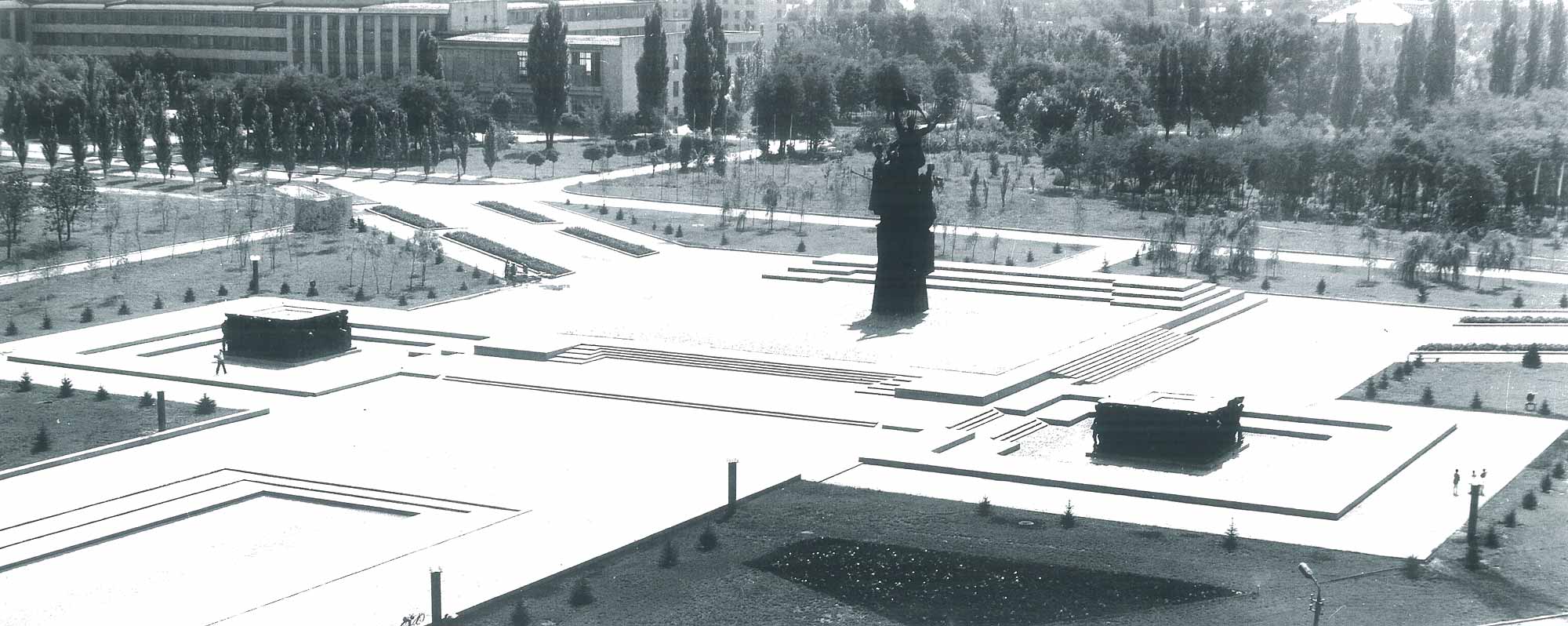 1973-1975 годы. Проект памятника командарму И.Ф. Федько в г. Ромны. (открыт в 1975 г.). Автор со скульпторами Климушко и Горбань Е. |