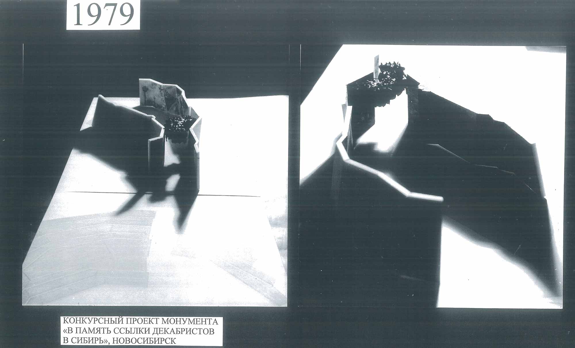1979 год. Конкурсный проект «В память пребывания в ссылке в Сибирь декабристов, Новосибирск. Автор с художником Волобуевой Н.Е. |