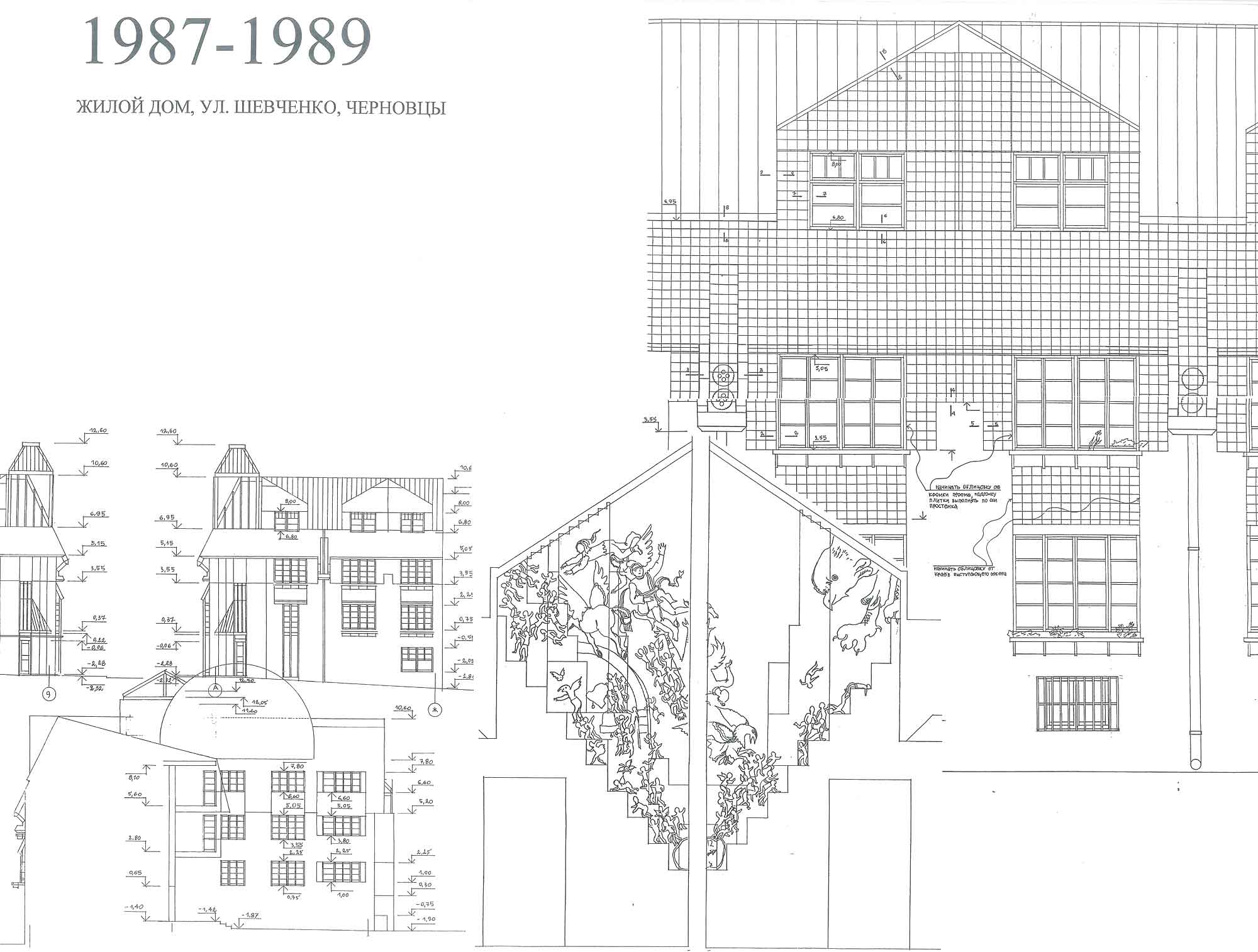 1987-1989 годы. Проект 16 квартирного жилого дома г. Черновцы, ул. Шевченко. (Построен в 1990 г.). Автор. |
