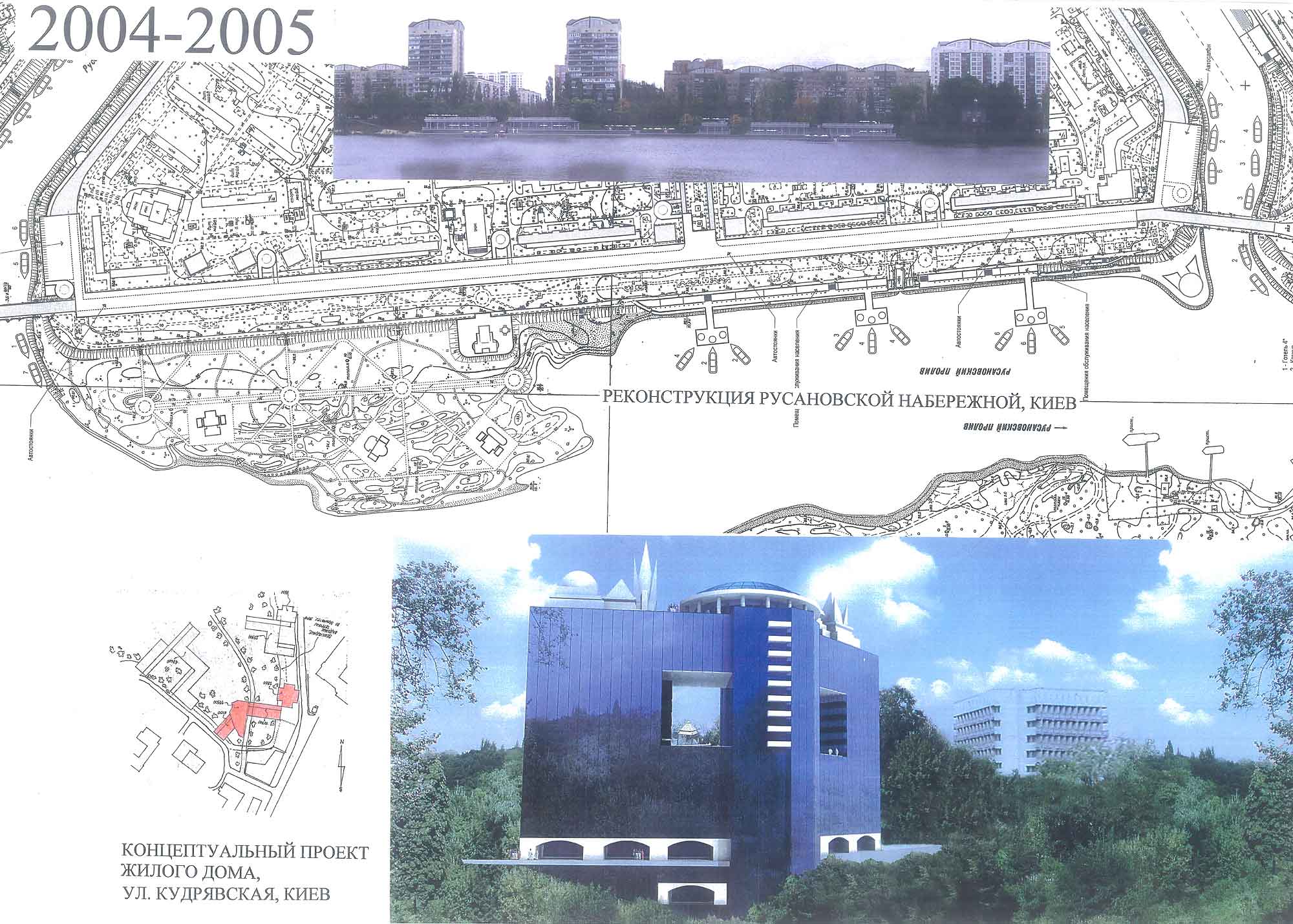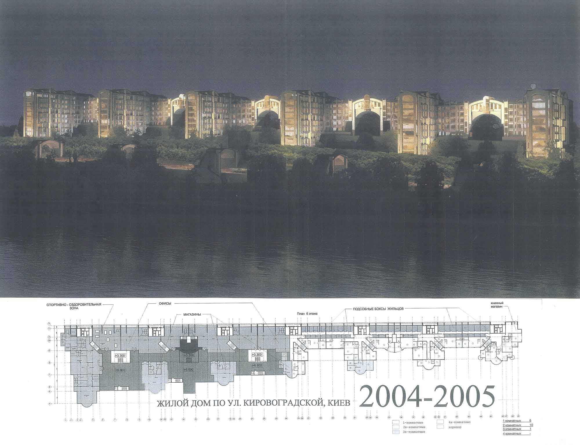 2004-2005 годы. Проект жилого комплекса по ул. Кировоградской, г. Киев. Автор с группой архитекторов и инженеров.