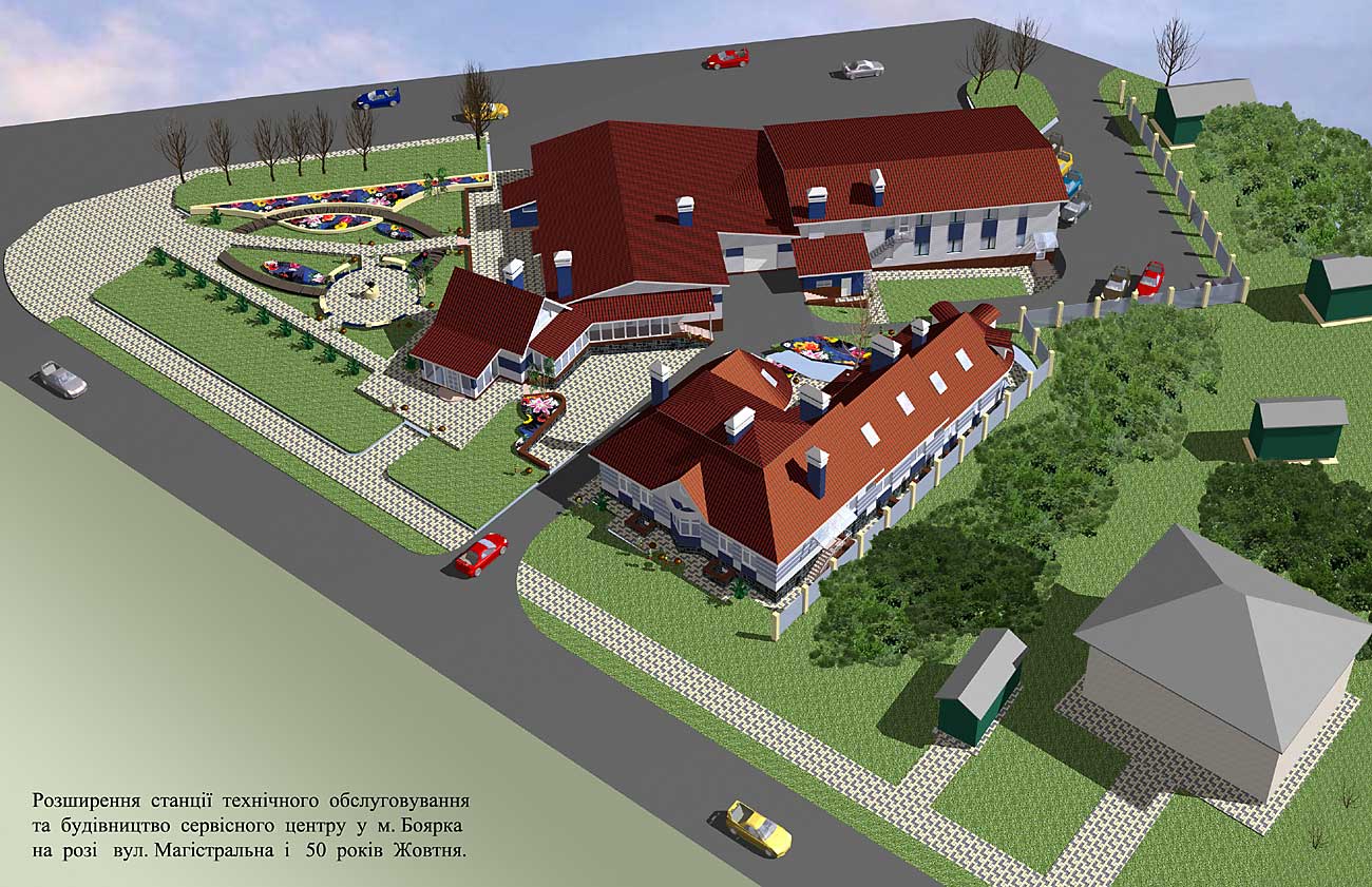 Архитектор Андрей Гончаров. Проект расширения станции технического обслуживания и строительства сервисного центра в городе Боярка. Киевская область.