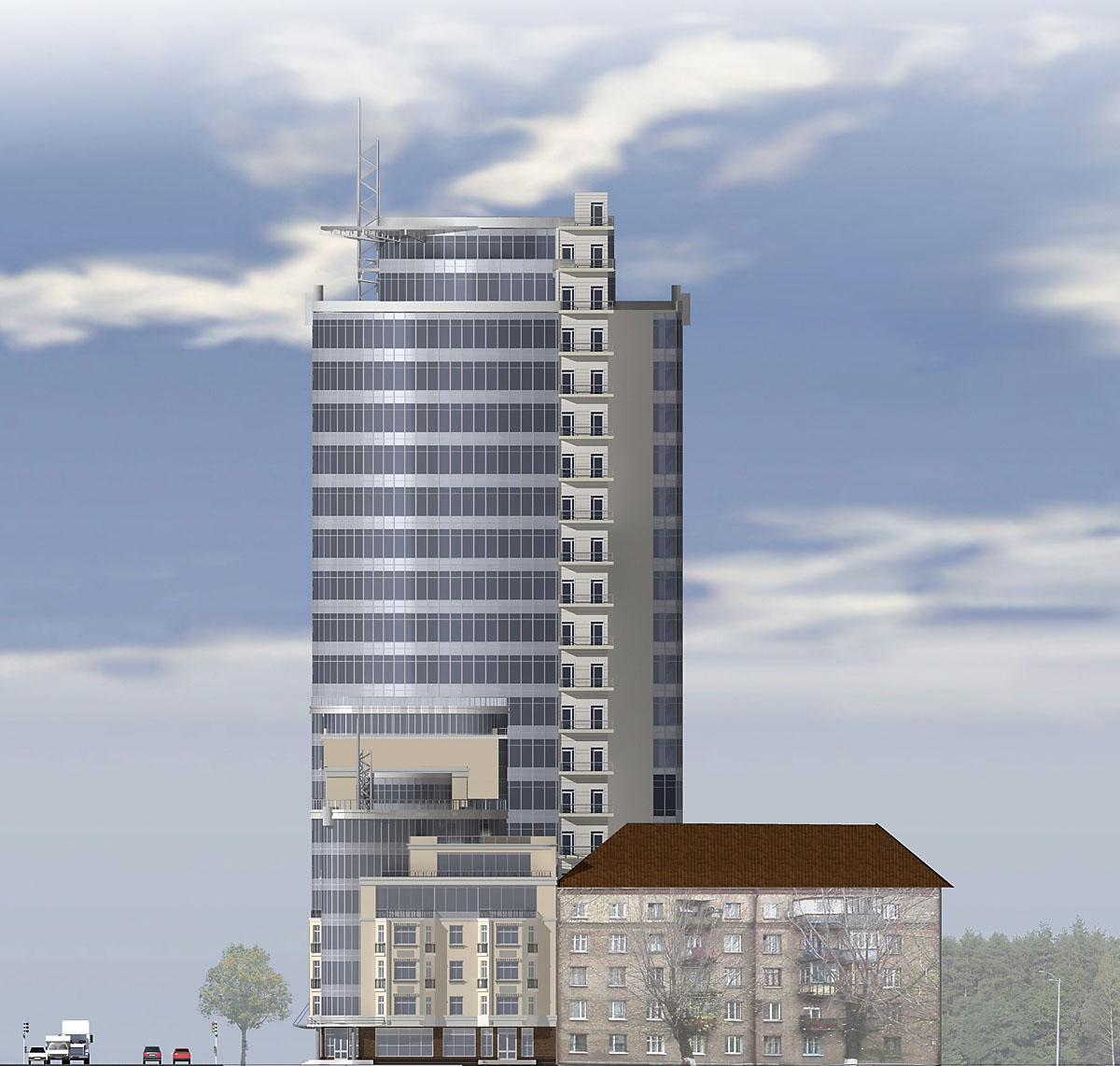 Проект жилого дома со встроенно-пристроенными помещениями на пересечении улиц Боженко и Лабораторной. Голосеевский район города Киева. |