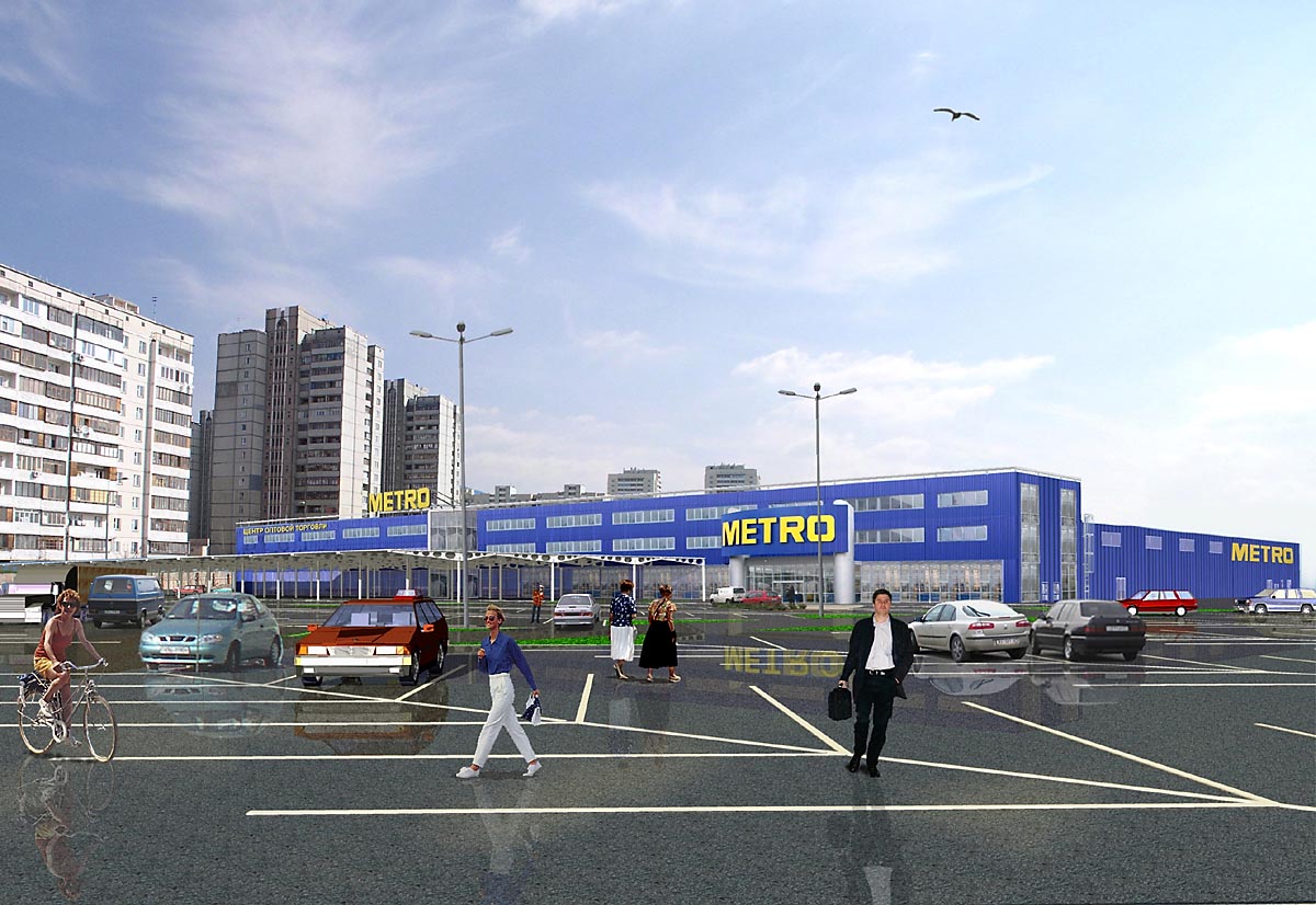 Проект торгового центра «Метро» с офисными помещениями на пересечении улиц Григоренко и Крушельницкой. Дарницкий район города Киева. |