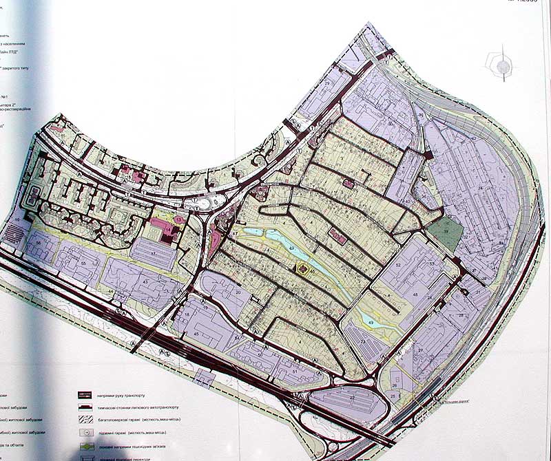 Это заказ поступил авторам в 2003 году. Помимо зоны индивидуальной застройки, вдоль Окружной дороги проходит коммунальная зона, путепровод, дорога на Фастов, складские помещения. Детального изучения требовал, прежде всего, район улиц Трублаини, Я. Кочура, 9-го мая. Расчёт показал, что необходим детский садик и школа на 720 мест. Планируется вынос трамвайного депо. Ключевой вопрос: что делать с индивидуальной застройкой (1,5 тысяч жителей на 42 га), сложившейся во времена, когда здесь было село и как превратить этот район в современный городской.