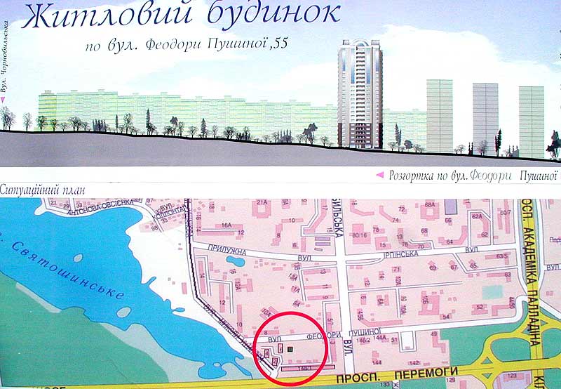 Проект строительства жилого здания по адресу: улица Пушиной Феодоры, 55, Святошинский район.