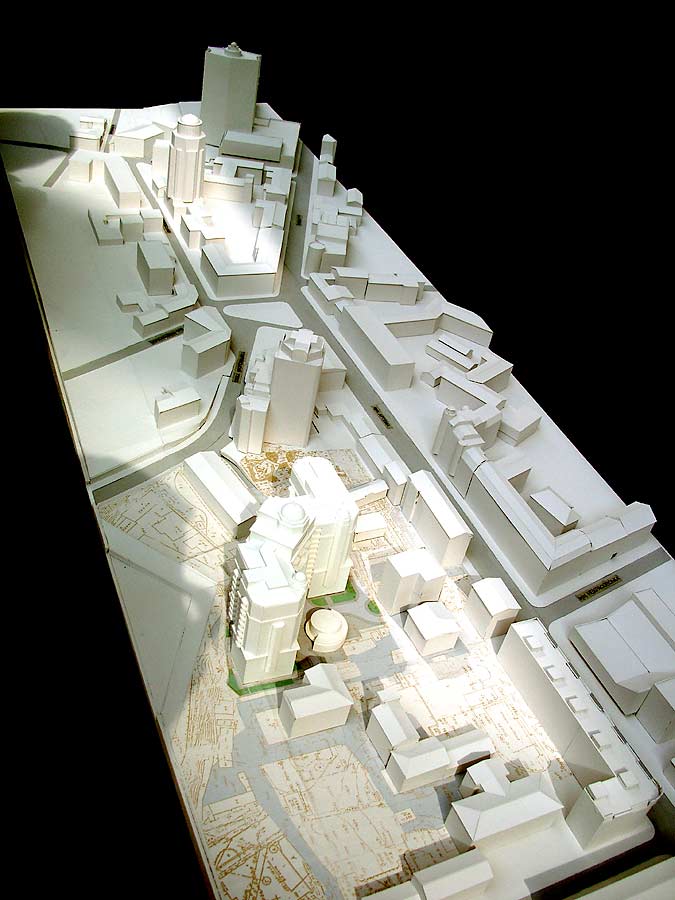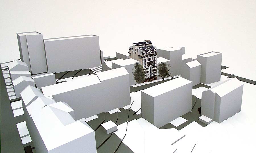 На этом месте находится аварийное 4-этажное здание. Оно требует разборки. Новое здание займёт участок в 0,8 га и будет 9-этажным. На первом этаже разместится вестибюль, далее 8 квартир – по одной на этаже. Н. Жариков: Грамотный проект. Это радует. О. Лелека: В целом работа удалась. Ведущий заседание В. Дубок: Необходим градостроительный макет 500 масштаба с захватом высотного здания у Сенного рынка. В дальнейшей работе над проектом следует учесть нормативные требования. В торцах необходимо соблюсти меру, чтобы дать возможность надстраивать соседние здания. Надо поработать над архитекурой фасада – тяжесть элементов порождает неудовлетворение, неуместно выглядит угловое завершение.