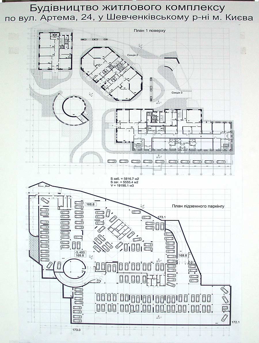 Проект строительства жилого комплекса с встроенно-пристроенными помещениями бытового и служебно-административного назначения и подземными гаражами по адресу: улица Артёма, 24, Шевченковский район.