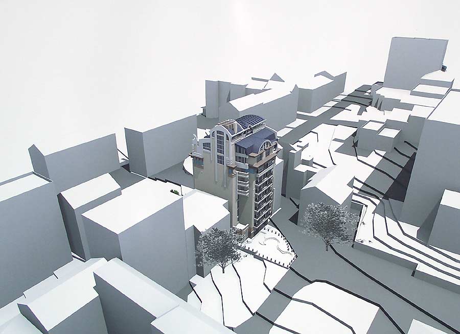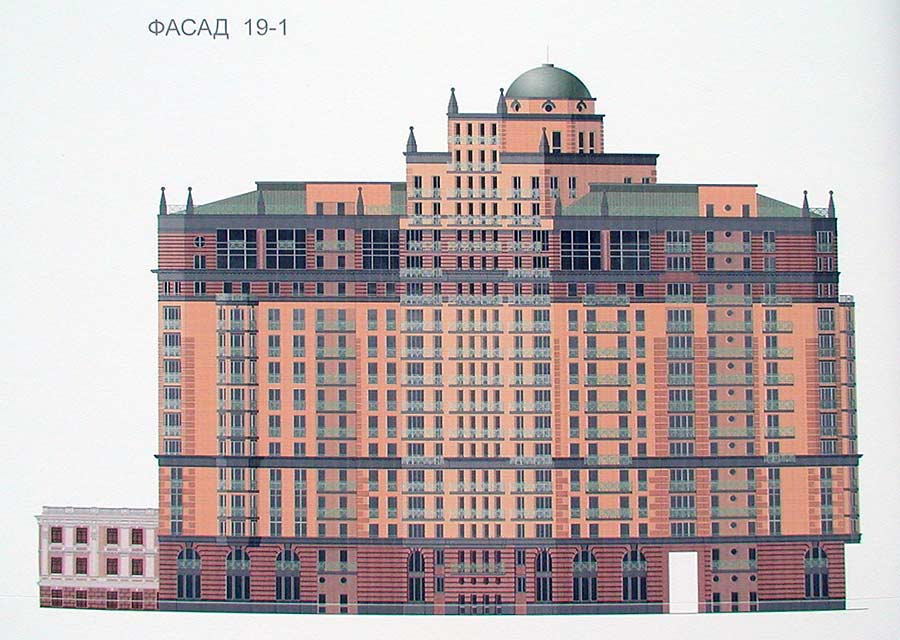 Проект рассматривается вторично. Автор доложил, что выполнены все рекомендации, сняты замечания рецензента, а проверка реестра охраны памятников показала, что спорное здание не стоит на государственом учёте. Однако члены Совета не увидели позитивных изменений. Н. Жариков: Максимум жилья, минимум удобств. Слишком громадный по массе. Р. Кухаренко: В итоге трёхлетних переговоров принято решение по восстановлению золотых куполов Свято-Николаевского собора Покровского монастыря – они и должны стать доминантой территории. А тут понатыканы тычки. Необходимо значительно снизить высотность и для оценки ситуации создать макет центральной части города. В. Ежов: Нет градостроительного обоснования, не решены вопросы транспорта и социального обслуживания. Э. Лещенко: Практически ничего не сделано после первого рассмотрения. Объект требует кардинального переосмысления. Не хватает материалов. Необходимо пересмотреть нагрузки на территорию. Проект возвращён на доработку.