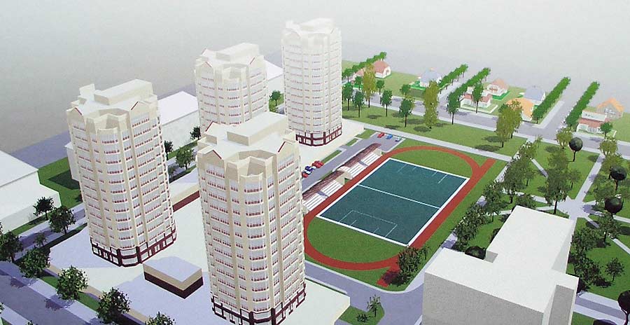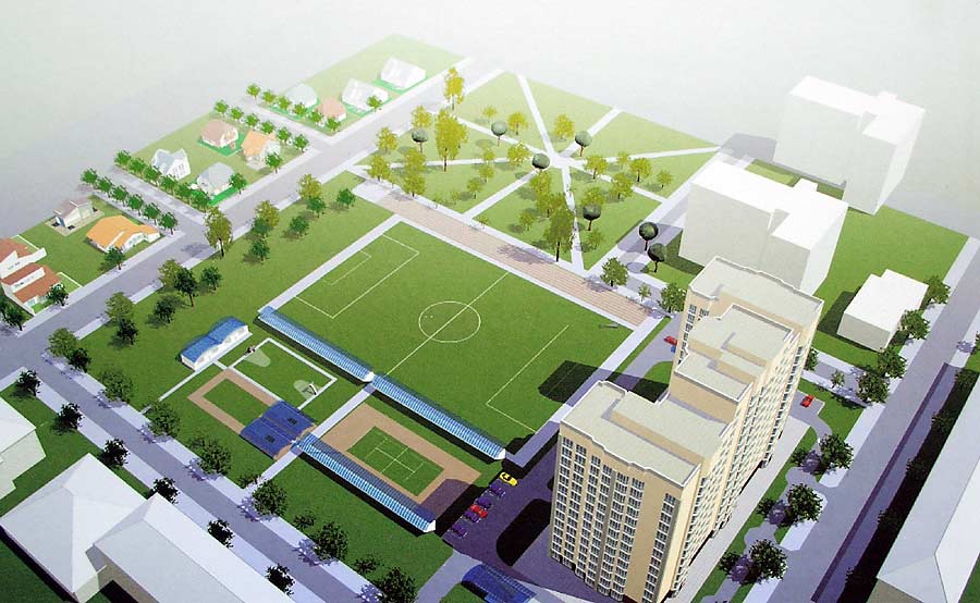 Участок находится на южном окончании Отрадного, рядом с учебным заведением и пятиэтажной и усадебной жилой застройкой. Главным заданием проектировщиков была реконструкция спортивного комплекса (сейчас просто ровного поля). Жилой 15-этажный 3-секционный дом отвечает всем нормативным требованиям. О. Лелека: Слово стадион здесь неприемлемо. Оптимальное поле должно быть 104 х 69, а это 90 х 60 - не дотягивает. Если в колледже спортивный зал нехорош, есть резон сделать универсальный круглогодичный комплекс и для студентов, и для района. Ведущий заседание Э. Лещенко: Здесь может быть и жильё и стадион. Давайте попытаемся найти решение с зальным помещением, сделать полноценный спорткомплекс. Возможно, с включением зелёной зоны. Стартовала большая программа «Спортивные сооружения в Киеве». Надо включить в неё этот стадион, он может работать и на город. Просим ещё раз выйти с предпроектной проработкой.