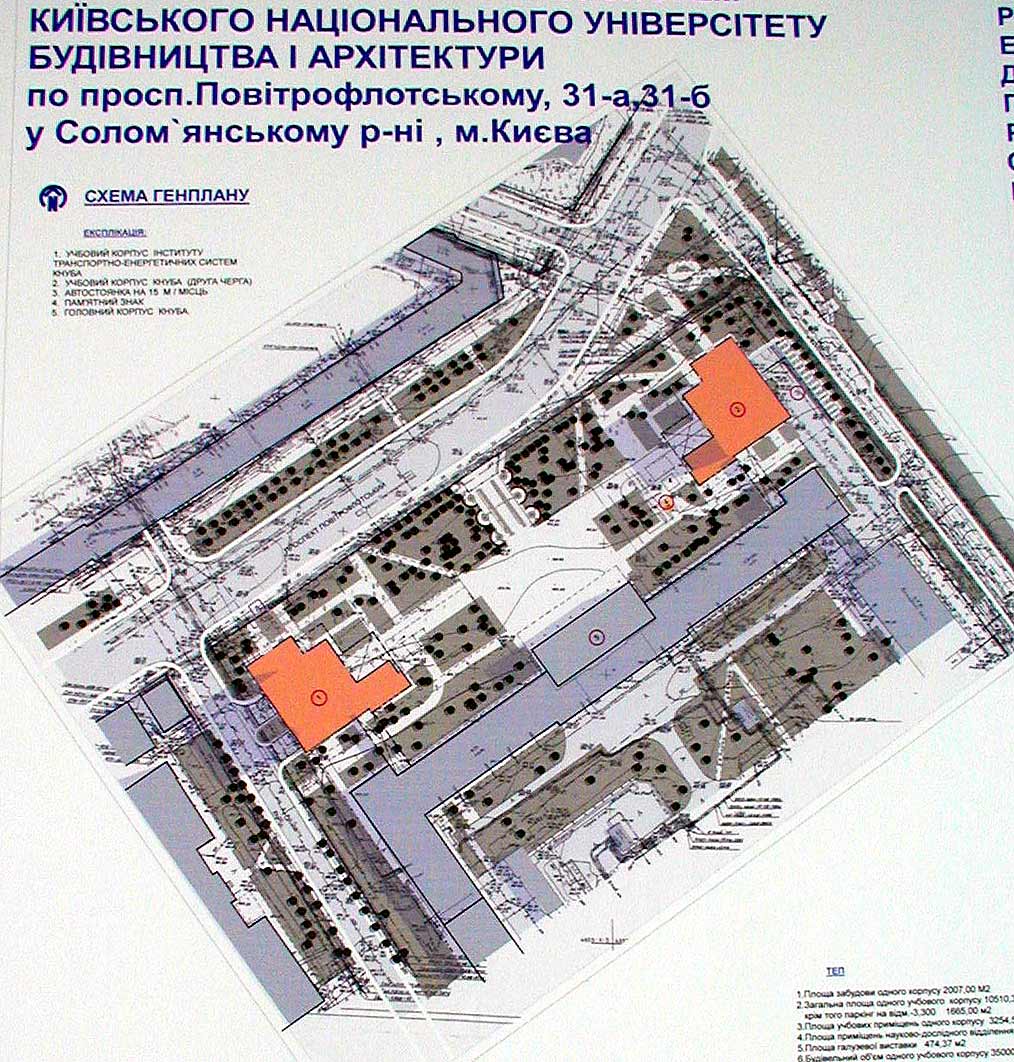 Предпроектные предложения строительства учебных корпусов Киевского национального университета строительства и архитектуры по адресу: проспект Воздухофлотский , 31-б, Соломен ский район.