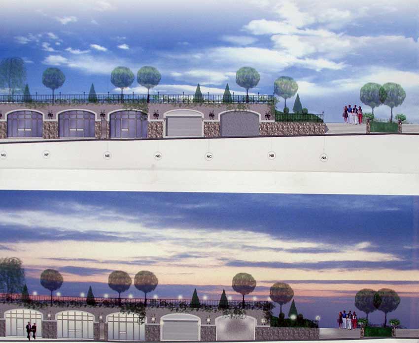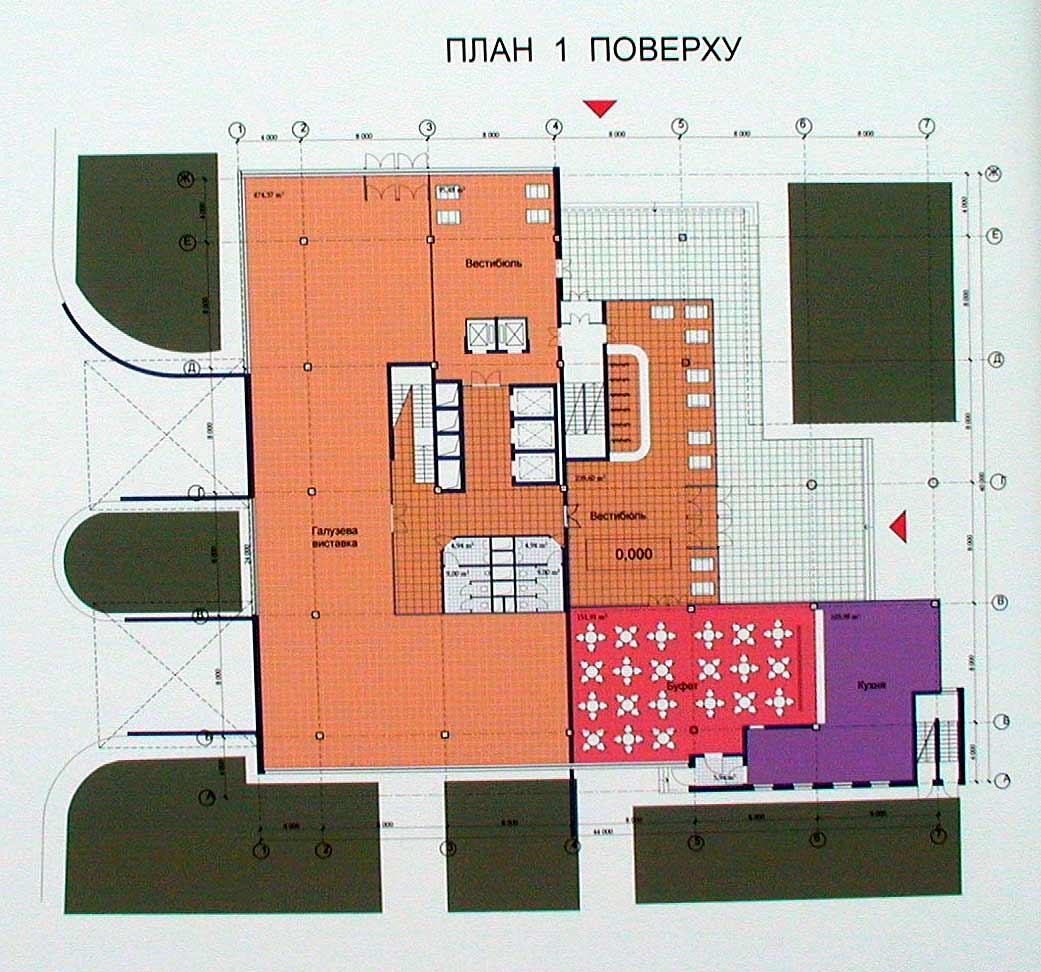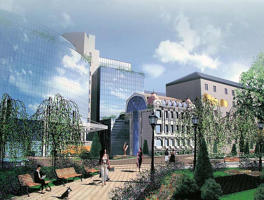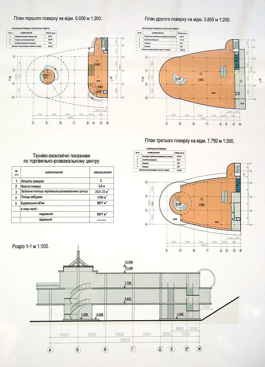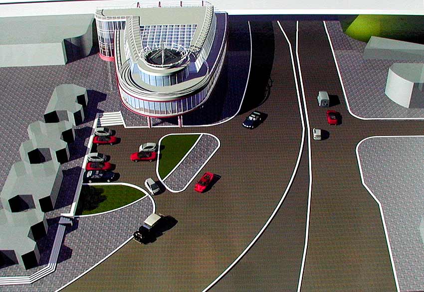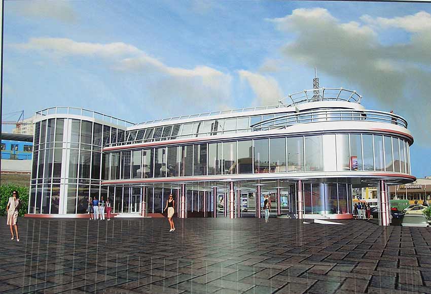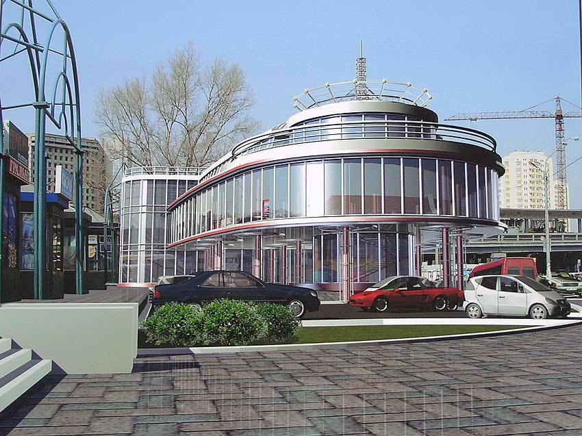 Для упорядочения территории предлагается построить торгово-развлекательный центр павильонного типа из лёгких металлических конструкций в три этажа. На верхнем этаже разместится ресторанная часть, второй этаж займёт зона развлечений, а первый – торговля.