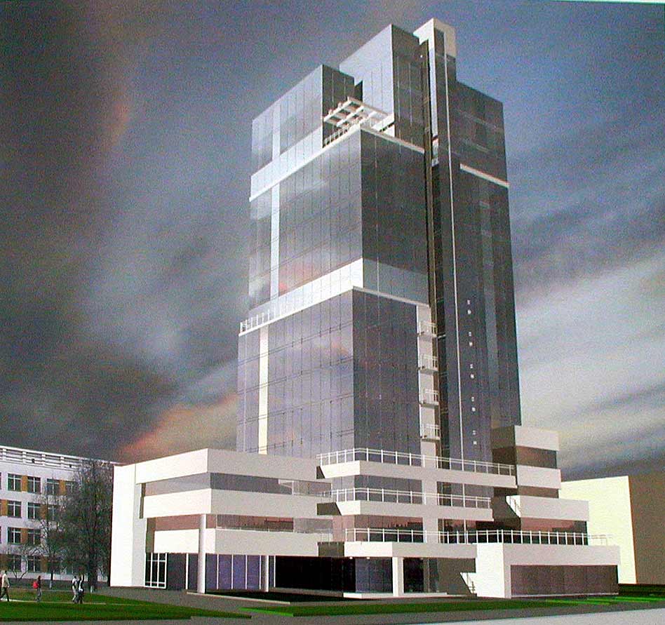 Архитектор Т. Доценко предлагает симметрично поставить по сторонам существующего основного здания (которое будет отремонтировано) два новых 16-этажных учебных корпуса, создав просматривающиеся с Воздухофлотского проспекта пропилеи. По второму этажу пройдёт объединяющая галерея. Строительство осуществляется в две очереди.