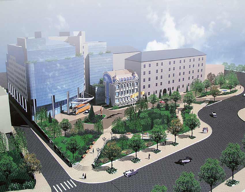 Вниманию членов Совета был предложен фрагмент гостиницы со следующими технико-экономическими показателями: площадь застройки – 0,72 га; этажность подземной части – 2; общая площадь подземной части 3 405 кв. м. (в том числе подземный паркинг 2 352 кв. м., фитнес-центр 1 053 кв. м.). Количество машиномест 70. Также показано предложение по благоустройству сквера и организации подъезда к гостинице. Также материалы по этому объекту выставил архитектор Я. Виг, подчеркнувший, что его проект был утверждён в конце 2001 – начале 2002 года. Несмотря на то, что поменялись заказчик и оператор, у них новые требования, свои авторские права на гостиницу он никому не передавал. Авторская позиция и концепция неизменна – памятный знак Троицкой церкви должен стоять перед гостиницей, есть и разработанная транспортная схема.