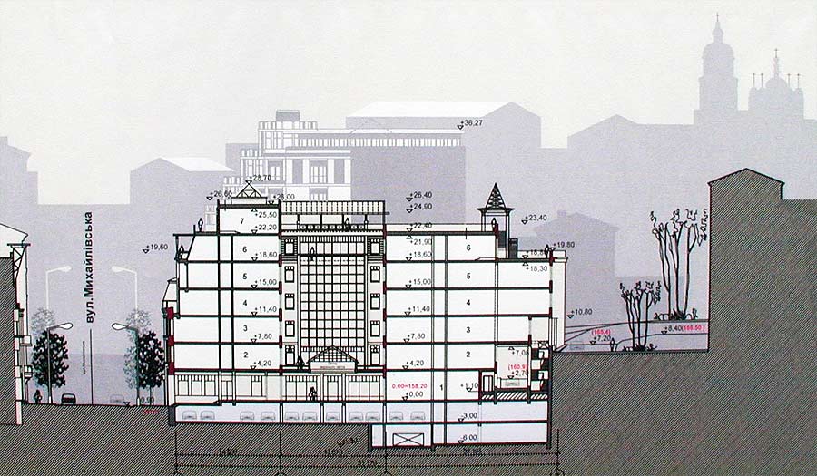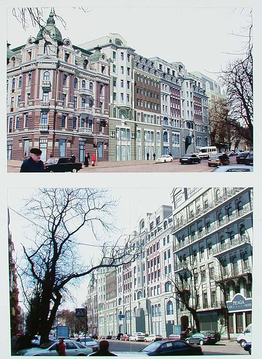А. Карминский: Речь идёт о двух, а не об одном здании. На Золотоворотской, 11 находится четырёхэтажное здание, которое подлежит элементарному сносу. Остаётся здание по Владимирской, связанное не только с нашей, но и с чешской историей. Здесь останавливался Ярослав Гашек. Сегодня здание шестиэтажное, а вы надстраиваете стационарный 7 этаж и продолжаете идти вверх застеклённой надстройкой. В своё время были сняты исторические балконы, но потом были восстановлены и сегодня – это исторический фасад. Ваше предложение к историческому фасаду не имеет никакого отношения. Вначале надо выяснить правовую базу работ.