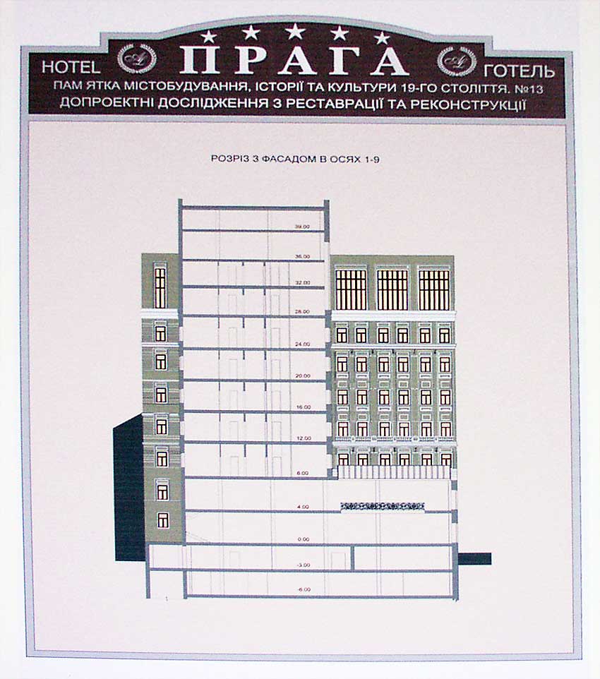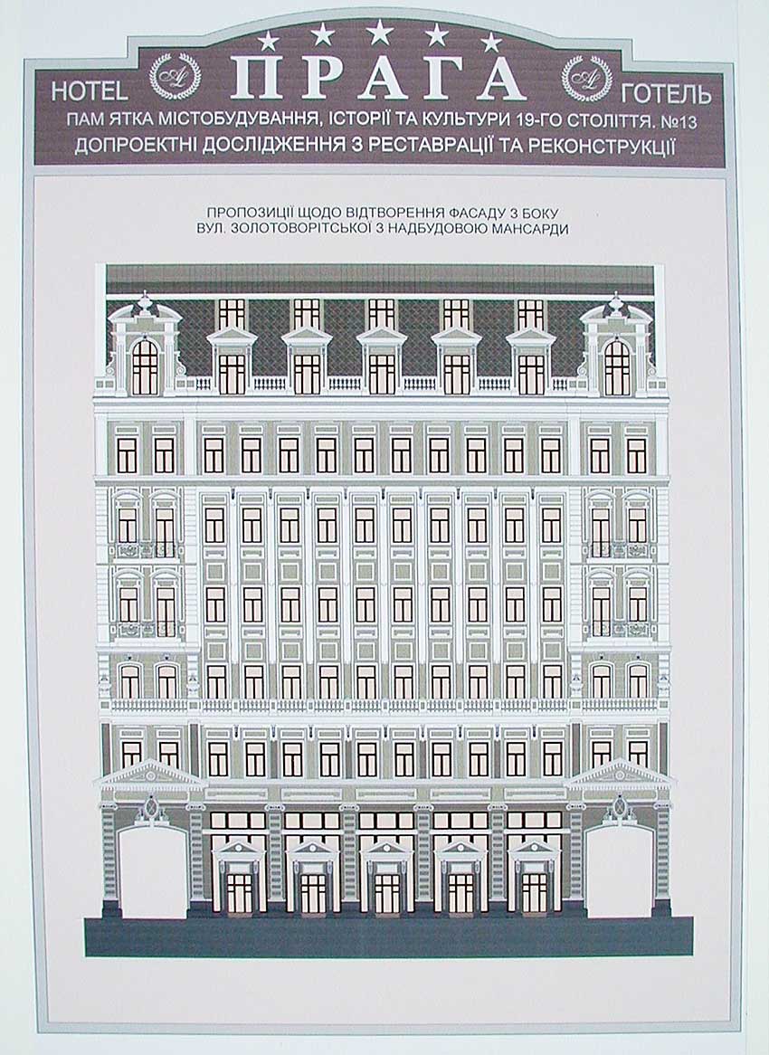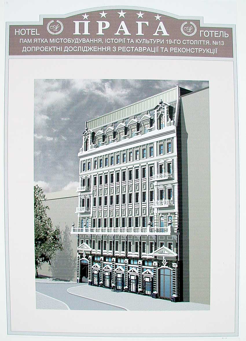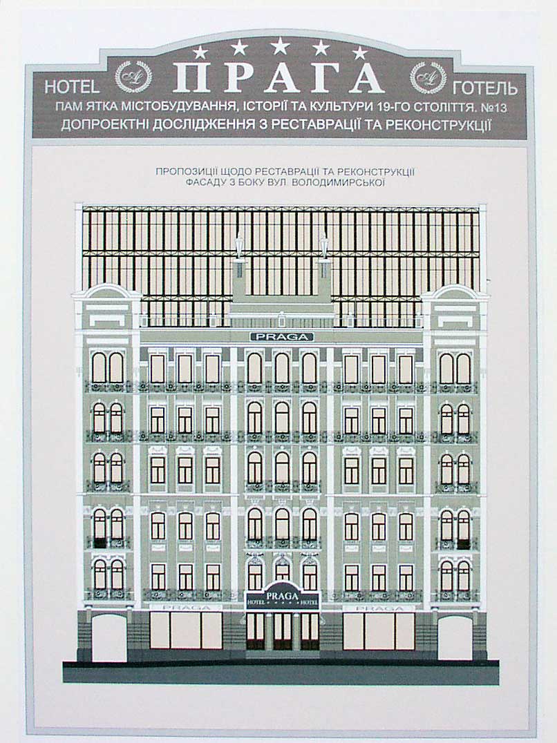 Опорное название объекта, имеющего выход как на улицу Золотоворотская, так и на улицу Владимирская - «Прага». В итоге реконструкции здесь должна появится пятизвёздочная гостиница. Предполагаемое количество номеров – 130. Исследования показали, что внутренние стены истончены, несущие способности фундаментов частично утрачены - необходимы активные реконструктивные мероприятия. Для того, чтобы техника могла войти внутрь надо разобрать и часть исторической фасадной стены. Планируется двухэтажная остеклённая надстройка со стороны улицы Владимирская. Первым был поставлен принципиальный вопрос: существует ли в рамках закона возможность подобной реконструкции?