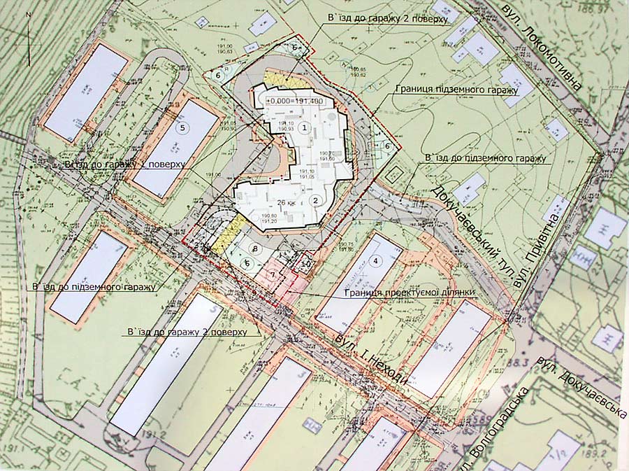 Проект строительства жилого здания с втроенно-пристроенными нежилыми помещениями и подземными гаражами по адресу: ул. Неходы и Приветная, Соломенский район.