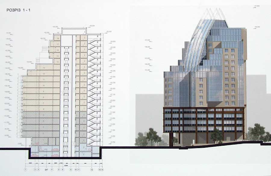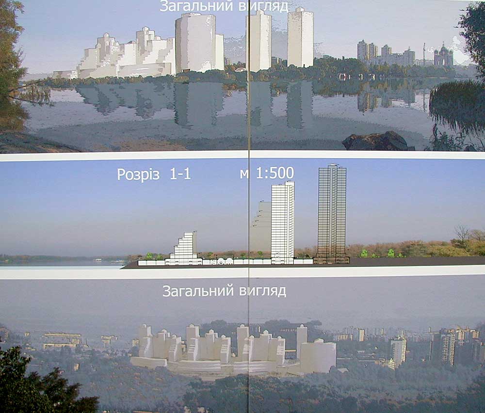 В. Вечерский: Р. Кухаренко это согласовал, но я сомневаюсь, что жильё здесь может быть комфортным – возможно лучше строить офисное здание. И хочу напомнить, что это территория заповедника «Древний Киев», а в соответствие с Меморандумом ЮНЕСКО «не допускается псевдоисторическое проектирование, так как оно противоречит как истории, так и современности». А положения Меморандума обязательны для выполнения в городах, внесённых в списки ЮНЕСКО (на Украине – это Киев и Львов).