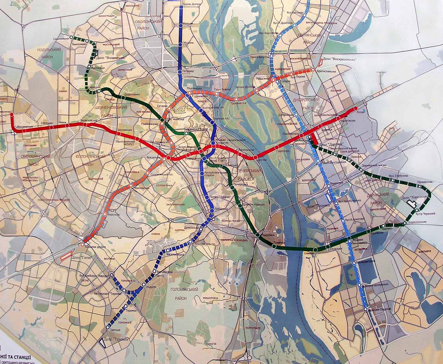 Новая трасса длиной 16 километров разработана в соотвествие с транспортной схемой и Генпланом. Будет построено 10 станций: станция «Вокзальная» - мелкого заложения с выходом к пригородным электричкам; «Площадь Победы» - глубокого заложения; «Глубочицкая» - тоже глубокого заложения с пересадкой на «Лукьяновскую»; «Татарка». 4 станции – эстакадные: «Подольская» (пересадочная), «Станкостроительная», «Труханов остров», «Залив Десёнка». Станция «Радужная» мелкого заложения - стыковка двух маршрутов - на Воскресенку и Троещину, следующая «Бульвар Перова». За конечной станцией «Братиславская» разместится депо.