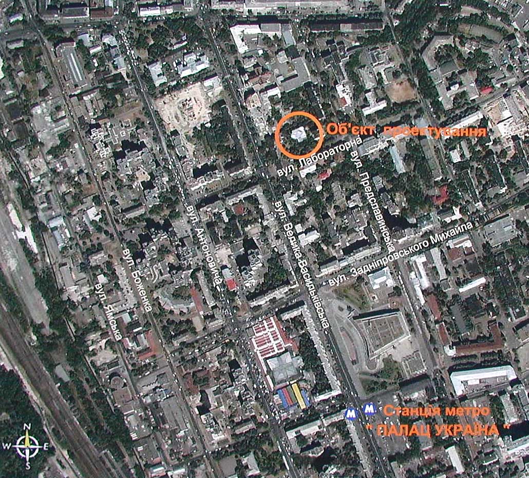 Участок площадью 0, 1745 га находится рядом с Дворцом Украина, костёлом св. Николая и Владимирским рынком. В последние 5 лет этот район активно застраивается. Сейчас на участке находится ветхое двухэтажное здание, подлежащее сносу. Высотность нового здания – 18 этажей. Жилая часть, рассчитанная на 70 квартир, и офисная имеют раздельные входы и разделённые вертикальные комуникации, предусмотрен подземный паркинг на 78 автомобилей.