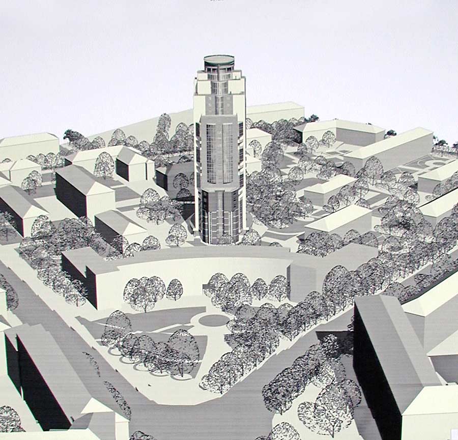 и авторы разработали концепцию, в соответствие с которой предлагают поэтапно снести имеющуюся в квартале застройку, оставив реконструированные здания школы и больницы. На первом этапе реконструкции на свободном от застройки месте строится пилотный высотный дом на 102 квартиры, в котором 41 квартиру получают жильцы двух домов идущих на снос.
