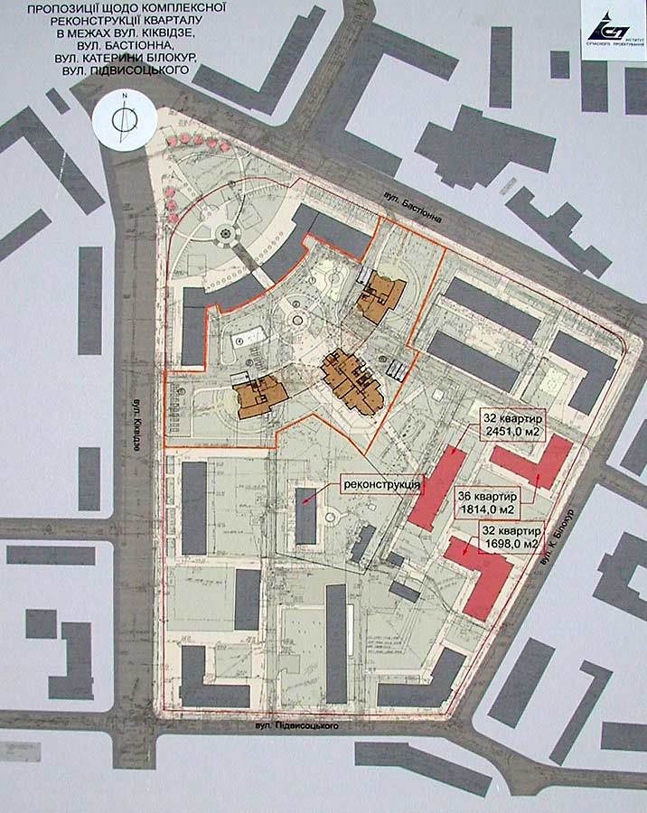Концептуальный проект реконструкции квартала, ограниченного улицами Киквидзе, Бастионной, Белокур и Подвысоцкого, Печерский район.