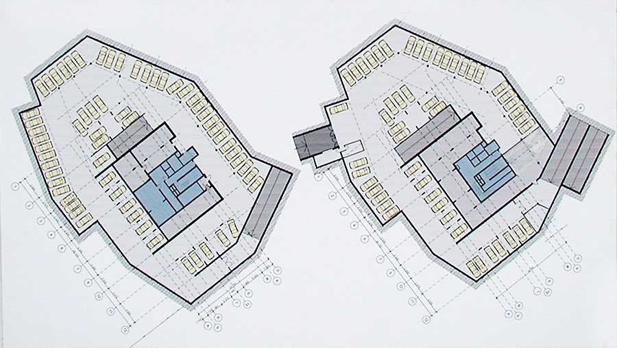 В. Присяжнюк: Не хватает места. Следует доработать проект. Рекомендуем заказчику освободить место для площадок, необходимых для жилого дома, разместив в одном здании на нижних этажах офисы, а выше жильё. Сделайте отдельные лифты. Разработайте варианты и покажите на Совете. |
