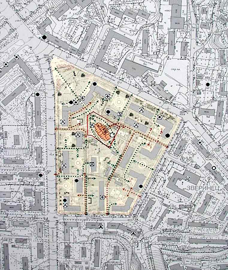 Проанализировав ситуацию двух кварталов, авторы разработали схему функционального зонирования этой территории. Они предлагают полностью вынести отсюда промышленные объекты и жильё, и организовать мощный общегородской центр с деловой, торговой и развлекательной функциями. В перспективе жилая зона могла бы разместиться на участке хлебокомбината (руководство которого стоит перед выбором между серьёзной модернизацией и выносом предприятия за город).