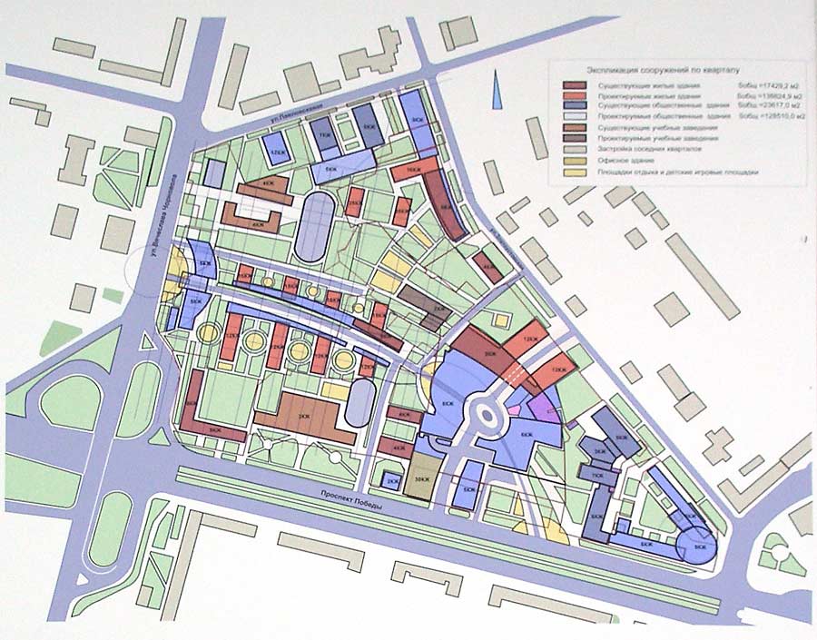 Сейчас в данном квартале плотность очень низкая для центра – 157 человек, а проектная плотность – 360 человек. Проектная площадь жилья – 68 000 кв. м. проектное количество квартир – 785 (сносится 268); планируемое количество машиномест 600.