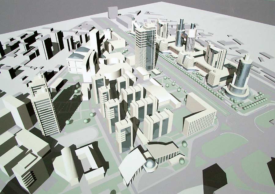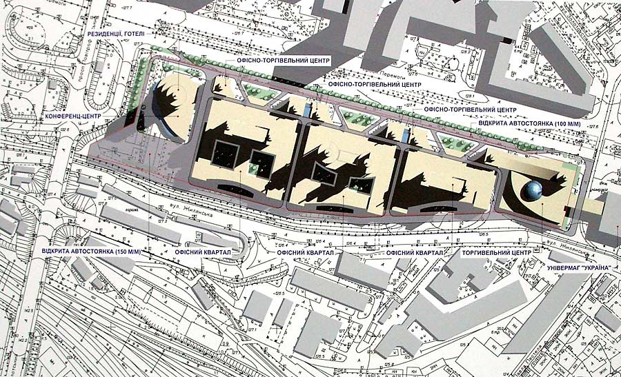 Е. Лишанский: Площадь Победы всегда рассматривалась как городской подцентр. На сегодняшний день площадь стала довольно унылым местом, сохранив значение только крупного транспортного узла. И здесь внутри квартала может быть общегородской центр. В Киеве в несколько раз меньше торговых и офисных площадей, чем в любой европейской столице. И это место очень подходит для Сити-центра.