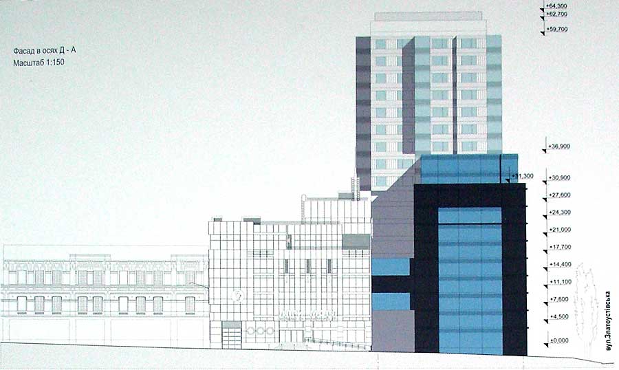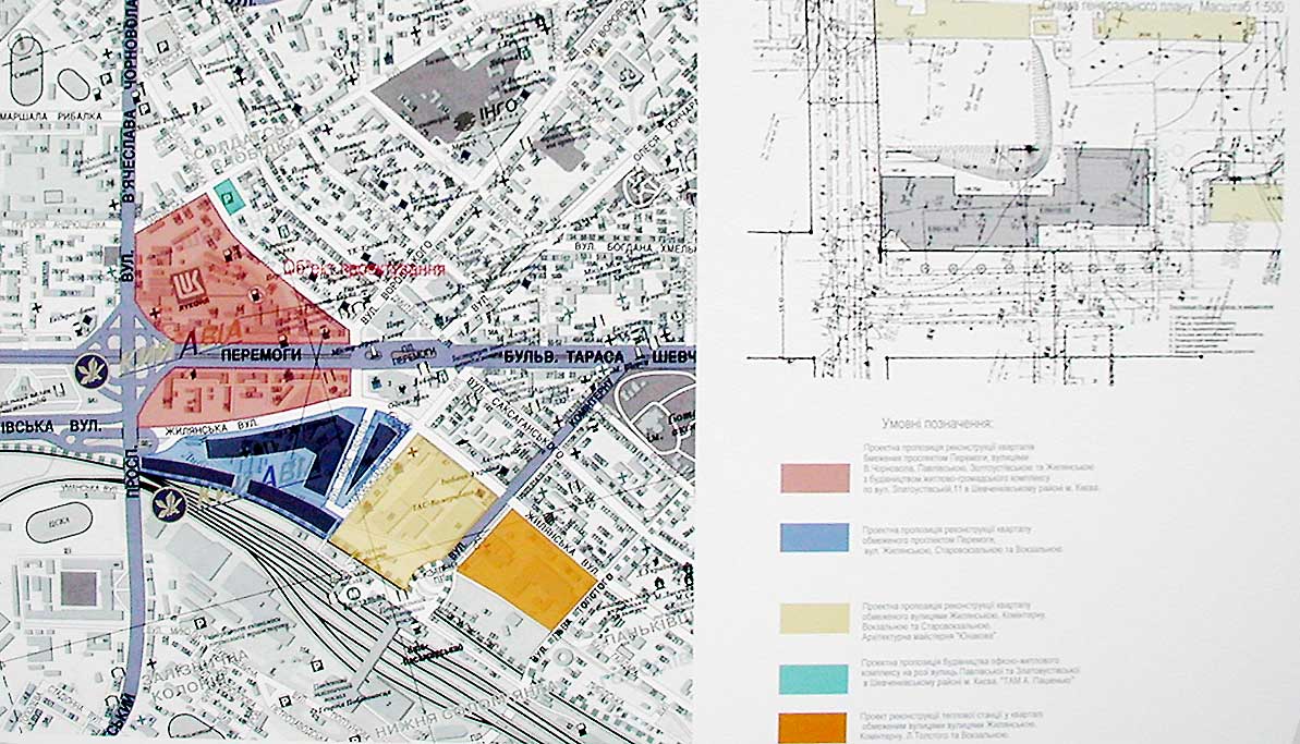 Предпроектные предложения реконструкции кварталов, ограниченных проспектом Победы, улицами В. Черновола, Павловской, Золотоустовской, Жилянской со строительством офисно-жилого комплекса по улице Золотоустовская, 11, Шевченковский район.