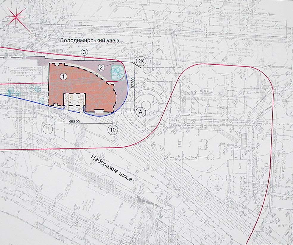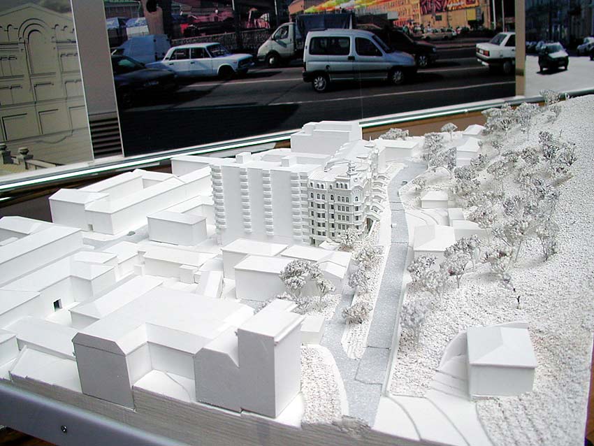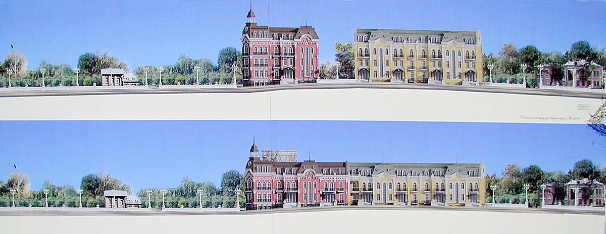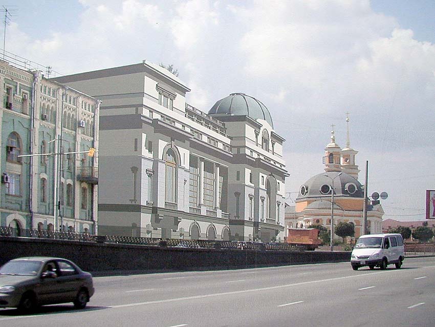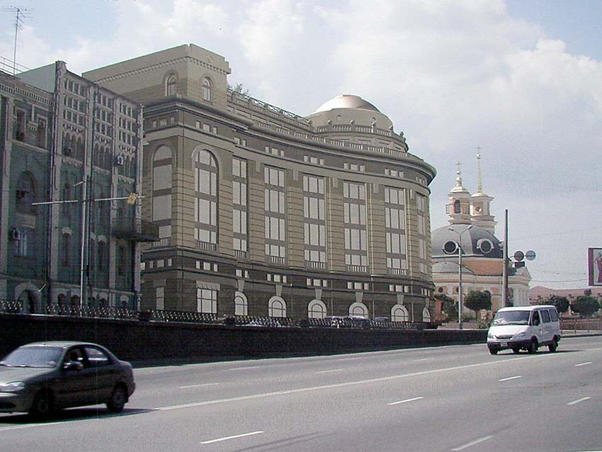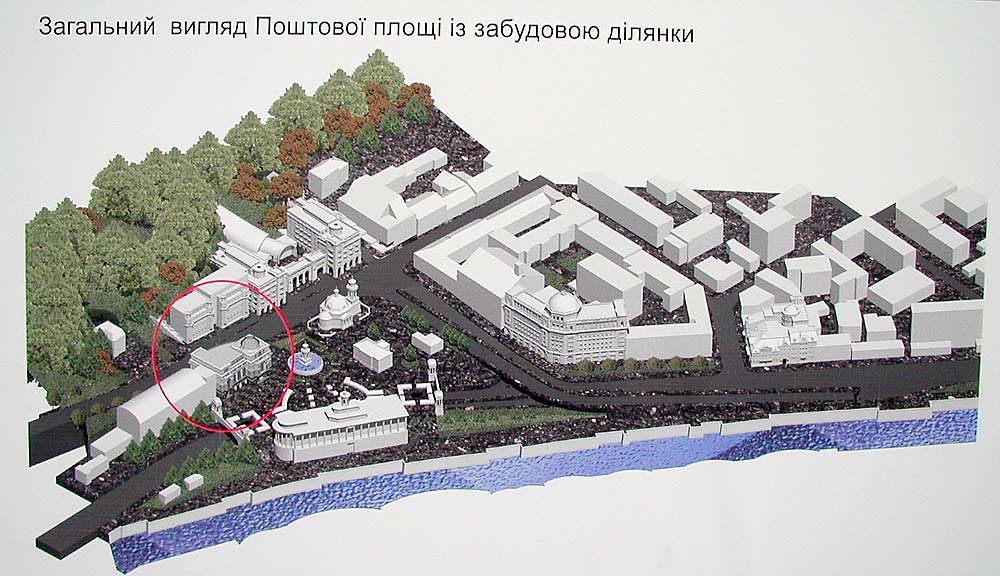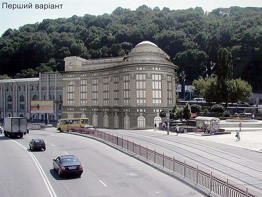 Я. Виг: Главный архитектор города попросил нас сделать предложение по Почтовой площади. Мы сделали, но не смогли изменить ситуацию. Совет перестал влиять на ход градостроительных событий в Киеве. И так как сделано в этой работе, сегодня проектировать офисы нельзя. Надо закрыть торец существующего здания и слегка достроить. В этой архитектурной ситуации – два купола – много. Это несостоятельно в данной среде. Ещё больше меня страшит, что будет с площадью. Совет должен быть жёстче.