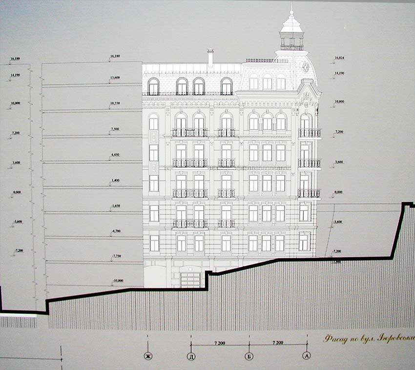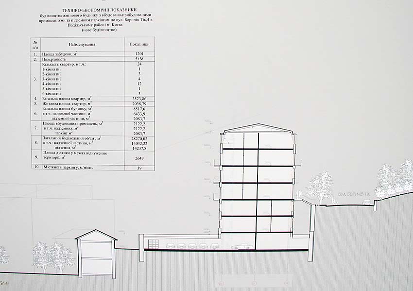 Это повторное рассмотрение проекта и авторы считают, что замечания, высказаннные Советом 12 октября сего года, они учли: понизили этажность и убедились, что новое здание не испортит подольский ландшафт. По мнению автора внесённые в проект замечания членов Совета ухудшили пропорции их здания. Поэтому, вместе с новыми материалами, представлен и первый вариант.