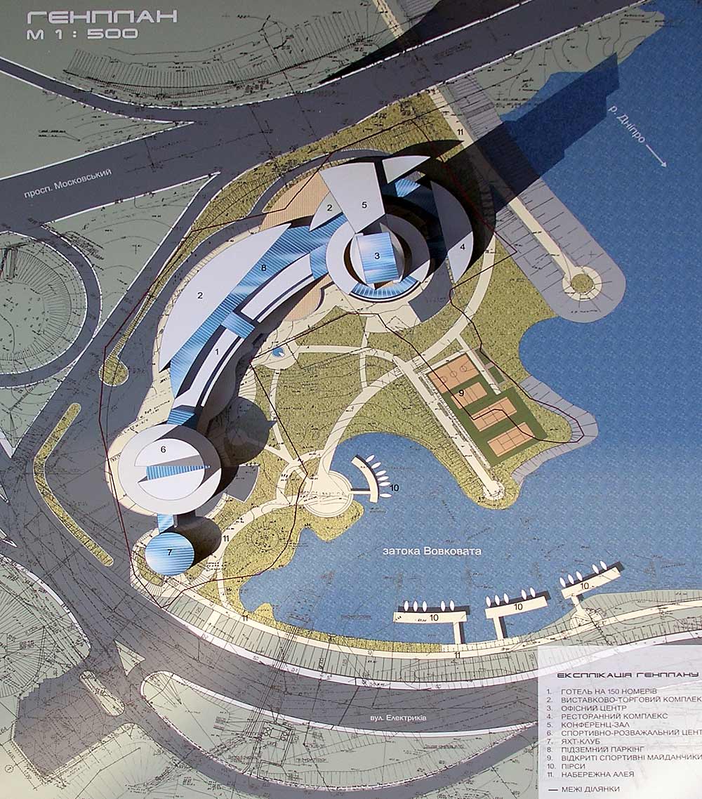 Предпроектные предложения строительства спортивно-развлекательного комплекса «Вiтрила» на берегу залива Волковата реки Днепр в Оболонском районе.