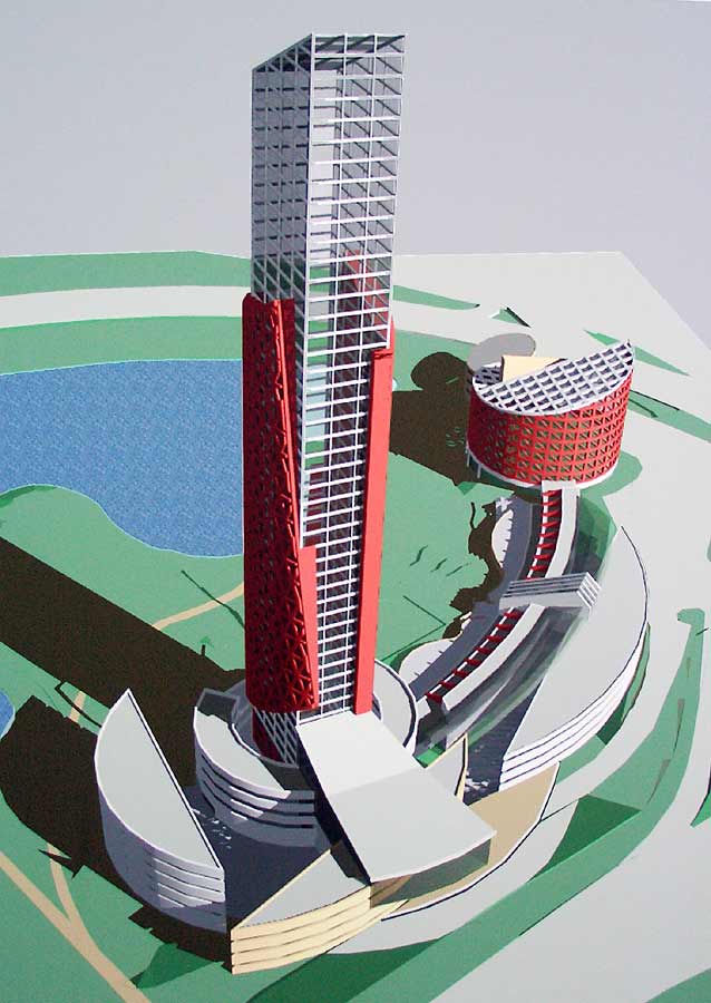 В процессе проектирования спортивно-оздоровительного комплекса появился и высотный акцент - здание, в котором смогут разместиться офисные помещения. Планируется организация внутренней улицы с основной торговой функцией. В банном комплексе с большим бассейном будут представлены бани всех народов мира, предусмотрены и гостиничные номера для отдыха и кафе. Развлекательная часть с парковыми аттракционами займёт 1,5 тысячи кв. м. Используя рельеф, паркинг разместится в нескольких уровнях.