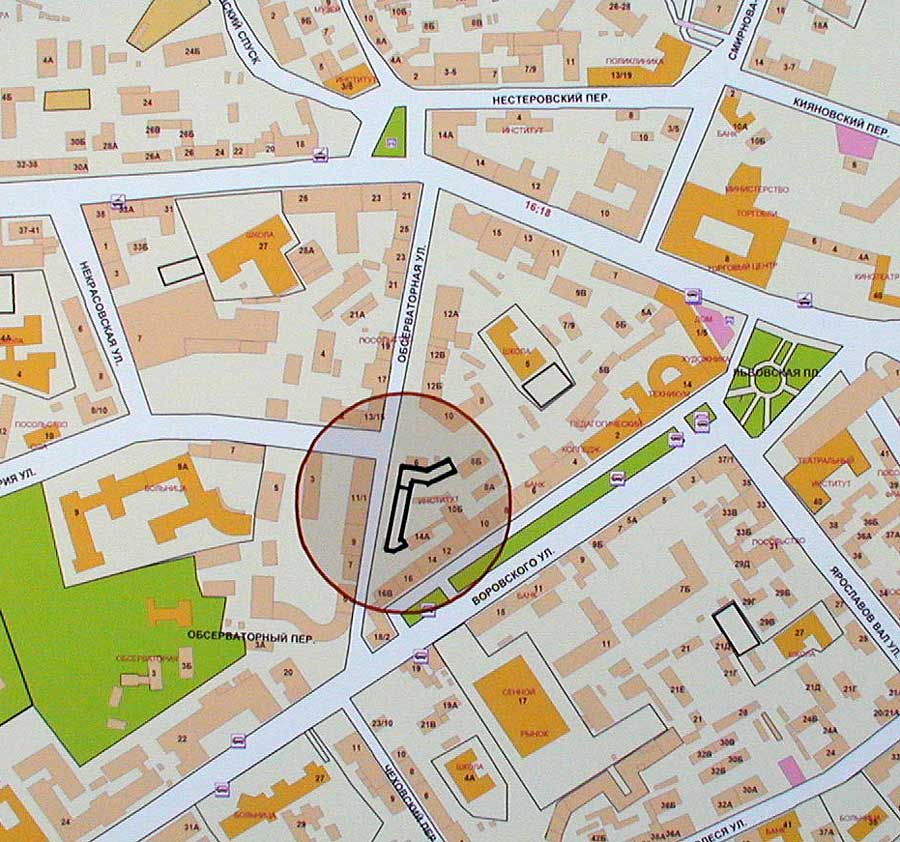 на плане города. |