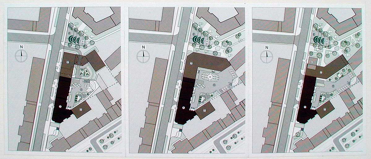 После рассмотрения предпроектных проработок в протокол было внесено требование определить статус дома на углу улицы Воровского и подготовить варианты решения с учётом рельефа участка. Авторы выполнили требования Совета и выяснили, что здание не является памятником и представили несколько новых вариантов.