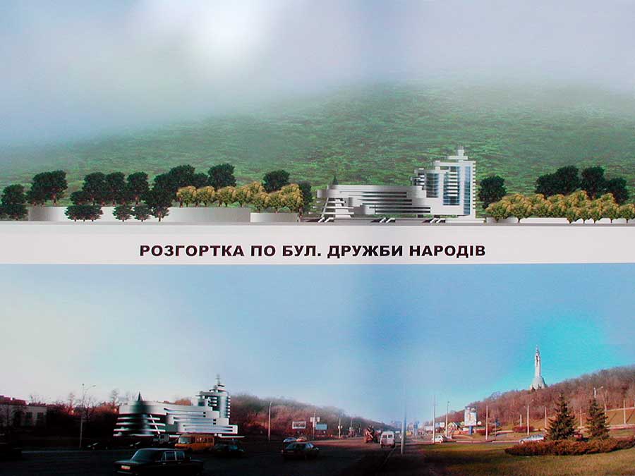 Н. Жариков: Я не думал, что мы на эту площадку выйдем с жильём. Пожалуй, самое правильное сделать здесь гостиницу. Это Киев, это природа – здесь нельзя делать такую архитектуру. И нужен ли такой большой комплекс на такой напряжённой трассе?