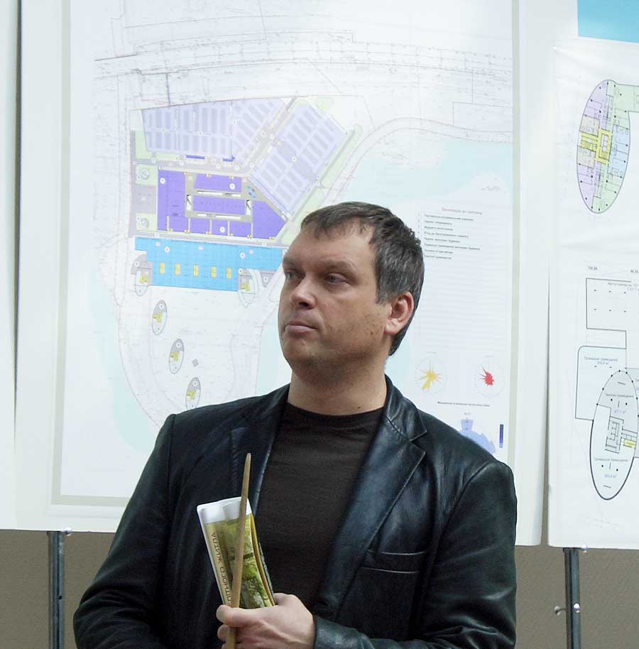 В. Ежов: Зонирование решено грамотно. Но зачем среди Днепра, воды делать такую жесткую городскую застройку? Надо поработать, чтобы лучше вписаться в эту среду.